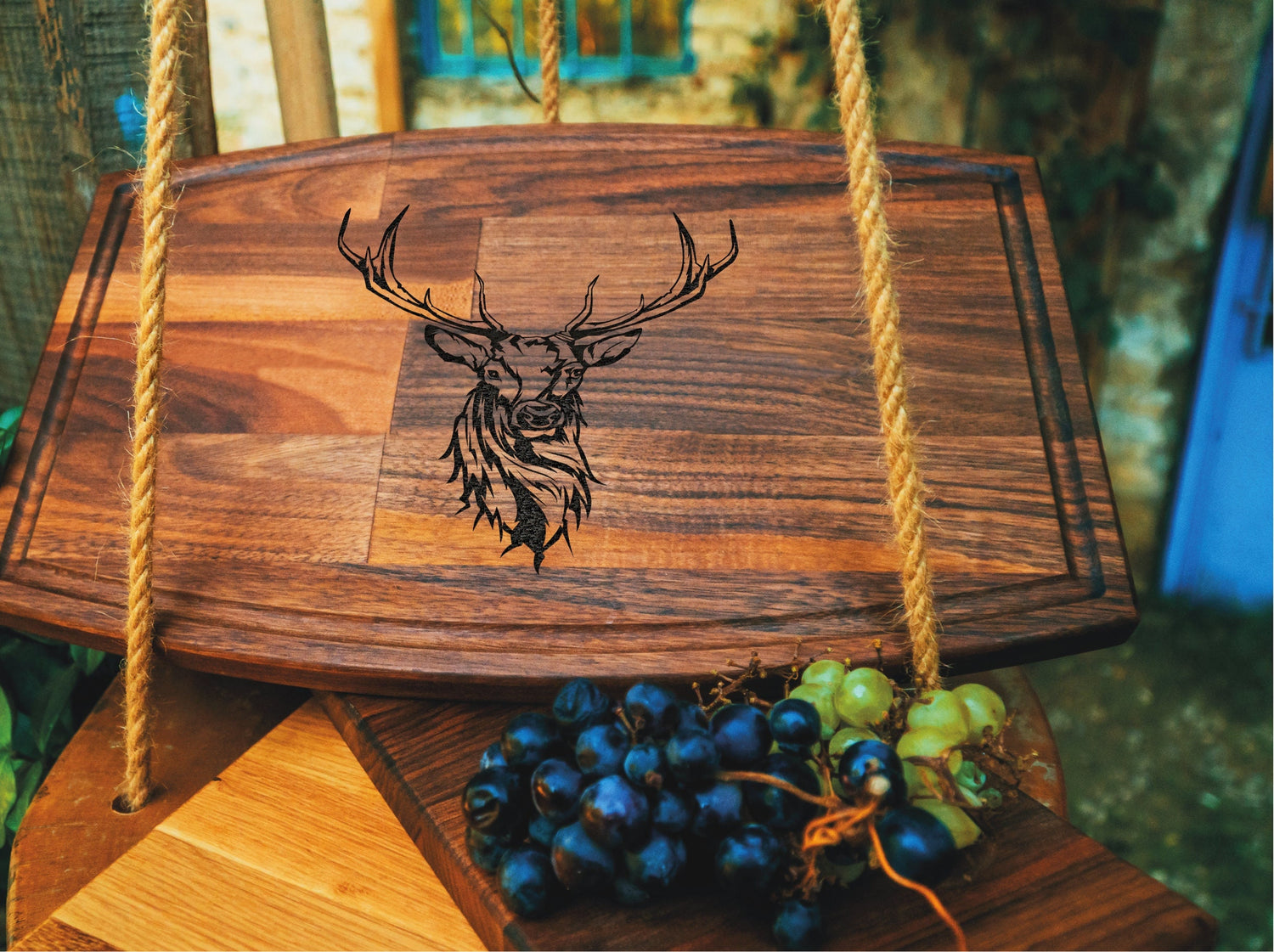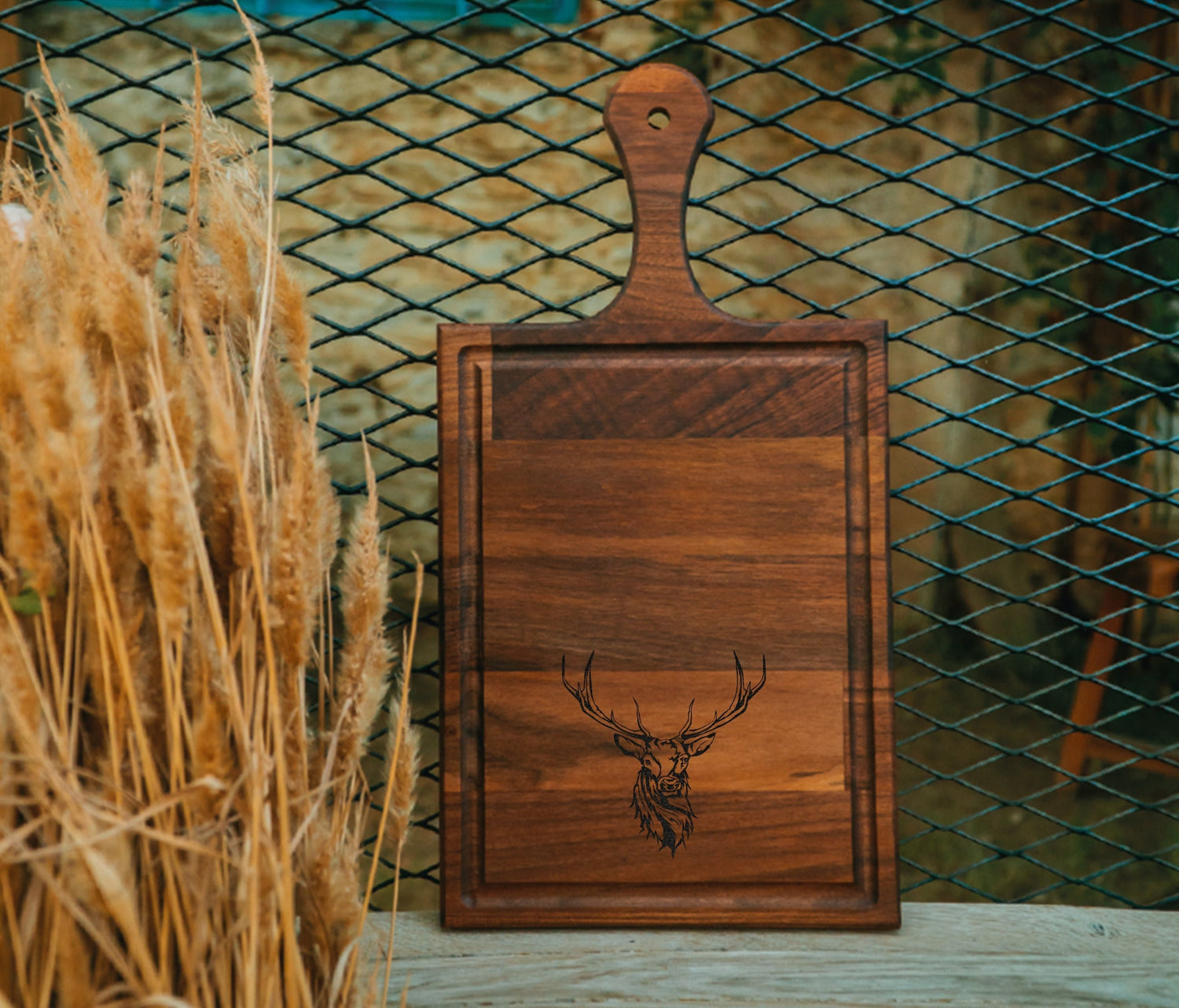 This handcrafted cutting board is a perfect gift for campers, hunters, or anyone who loves the outdoors. It's a unique and functional piece that adds rustic charm to any kitchen or dining space.
