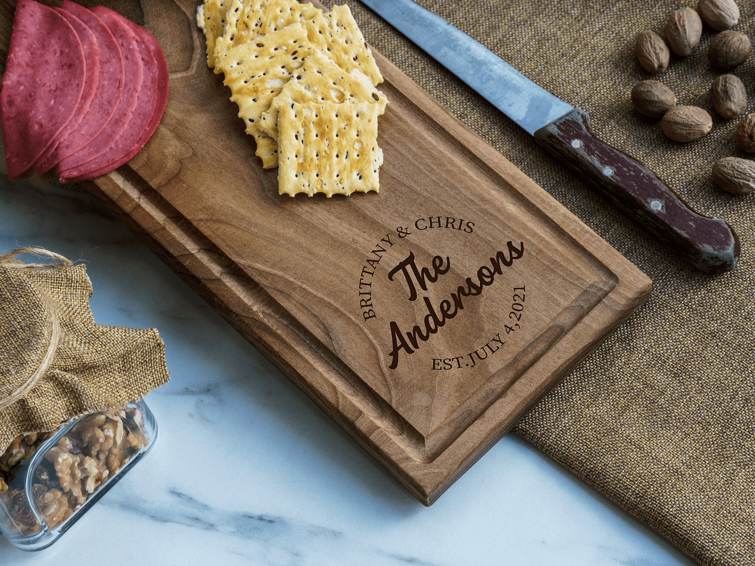 Elevate your kitchen with a custom-engraved cutting board, a perfect blend of practicality and personalized style. These beautiful and functional pieces make thoughtful gifts for any occasion and add a touch of warmth to your home.