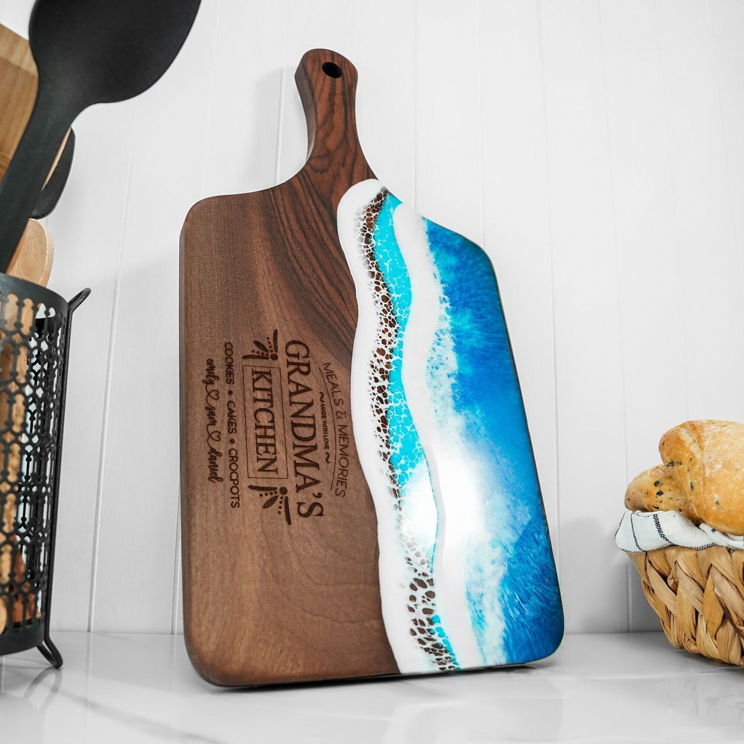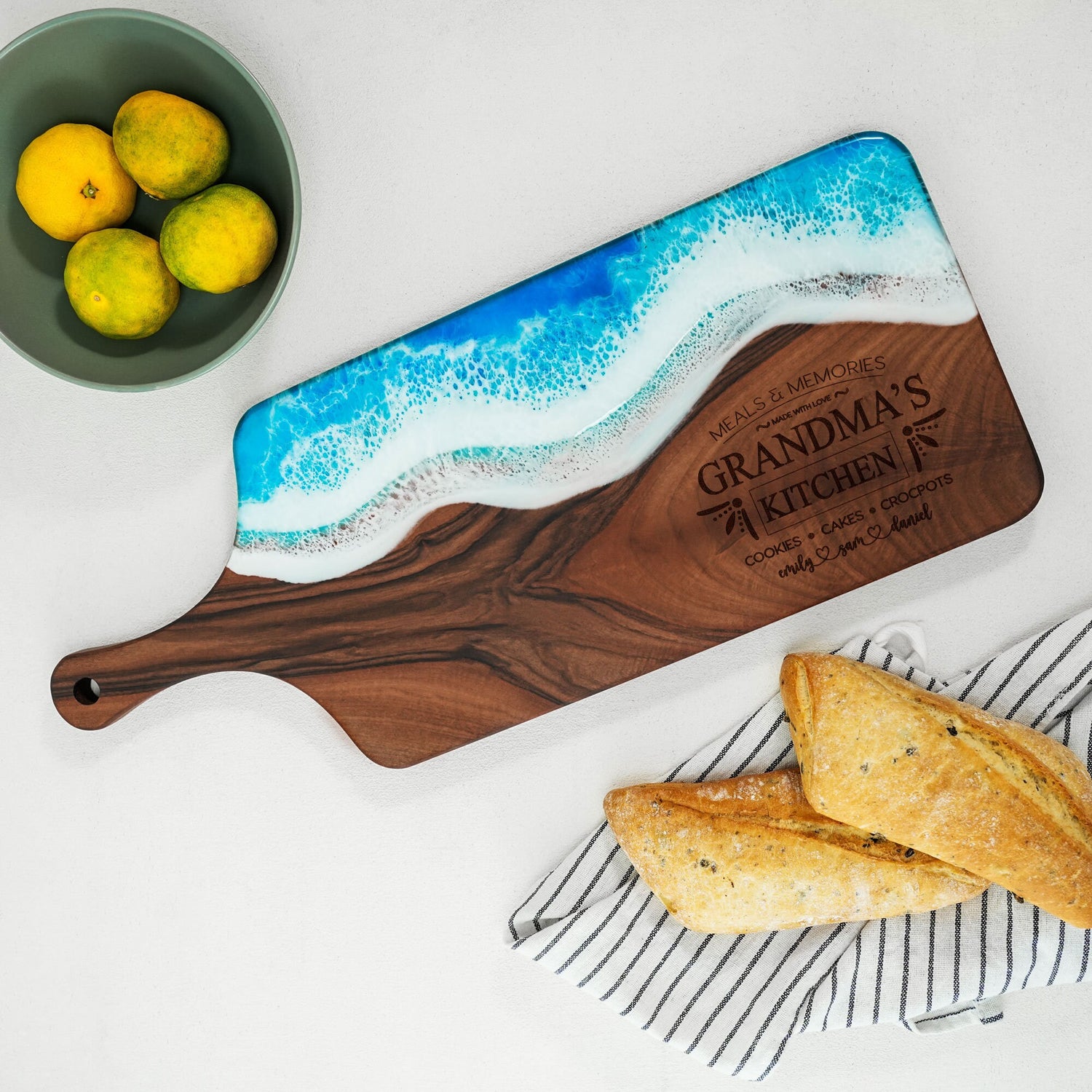 Christmas Gift Recipe Resin Ocean Cutting Board, Handwritten Recipe Charcuterie Board, Personalized Grandma Gift for Christmas, Epoxy Art