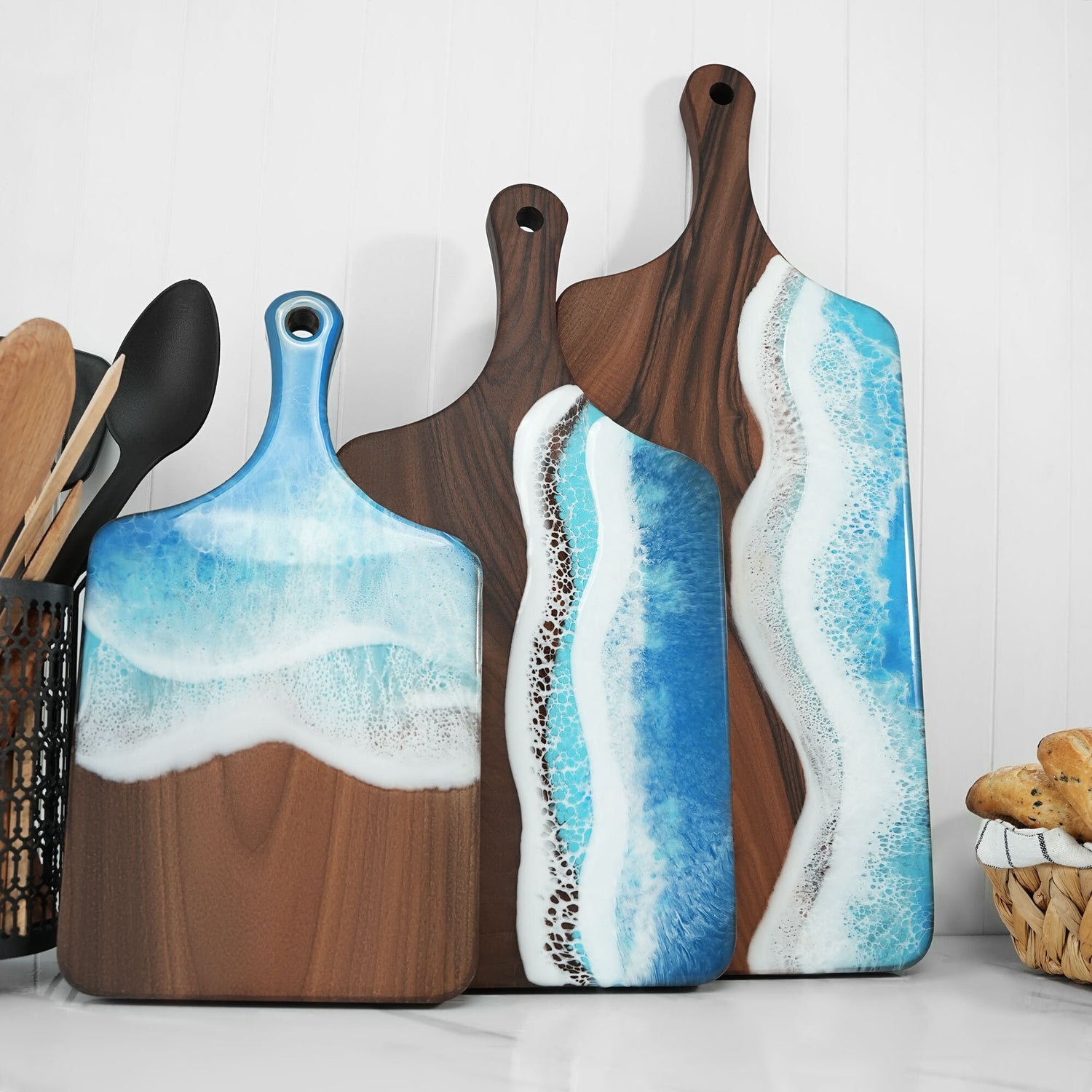 Please note that each board is one-of-a-kind. Slight variations in resin patterns, wood grain, and color may occur, adding to their unique charm.