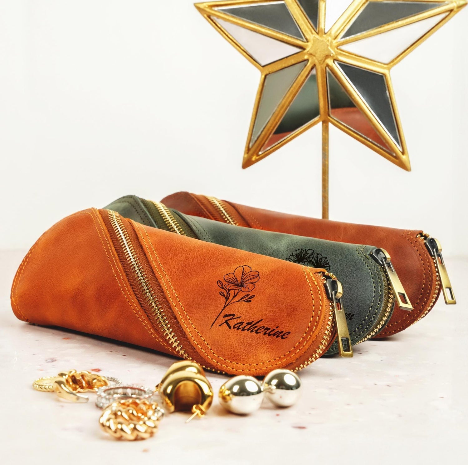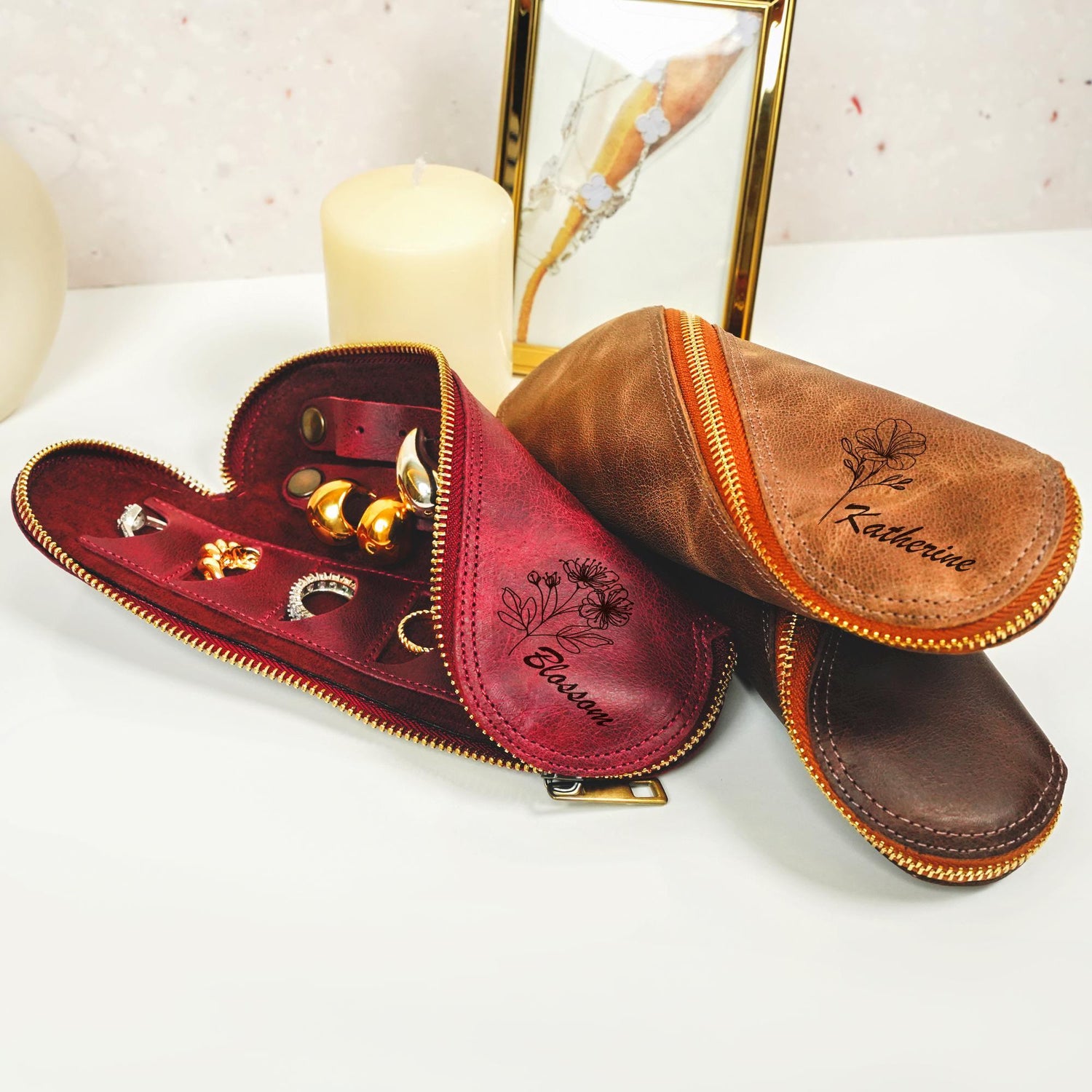 Personalized Leather Travel Jewelry Box, Custom Birth Flower Name Jewelry Organizer, Bridesmaid Proposal, Birth Flower Gift, Birthday Gifts