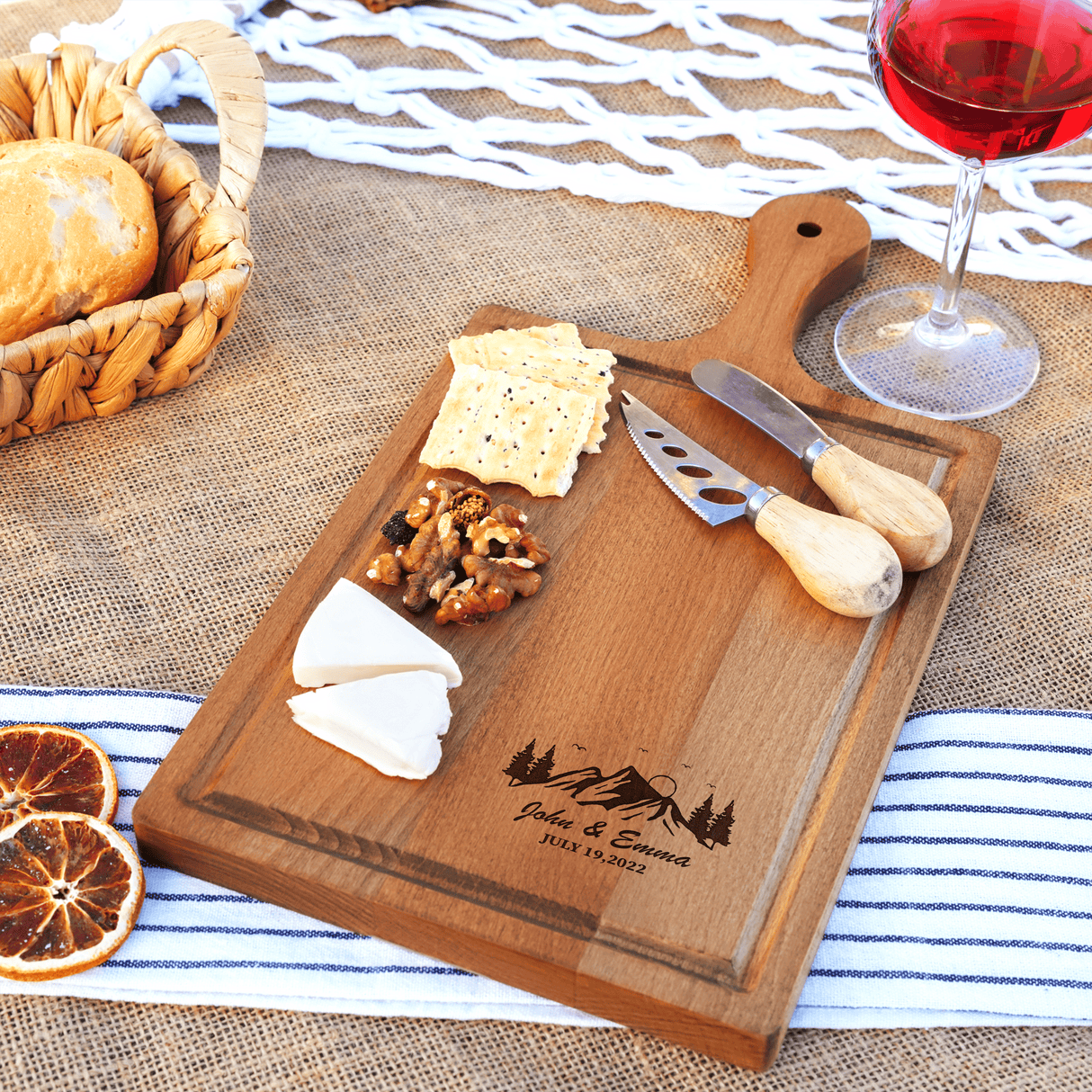 Looking for a sophisticated and functional gift that will impress new homeowners, delight realtors, and add a touch of personalized elegance to any kitchen? Our custom charcuterie boards, which function beautifully as a personalized cheese board and a wooden bread cutting board, are the perfect solution.
