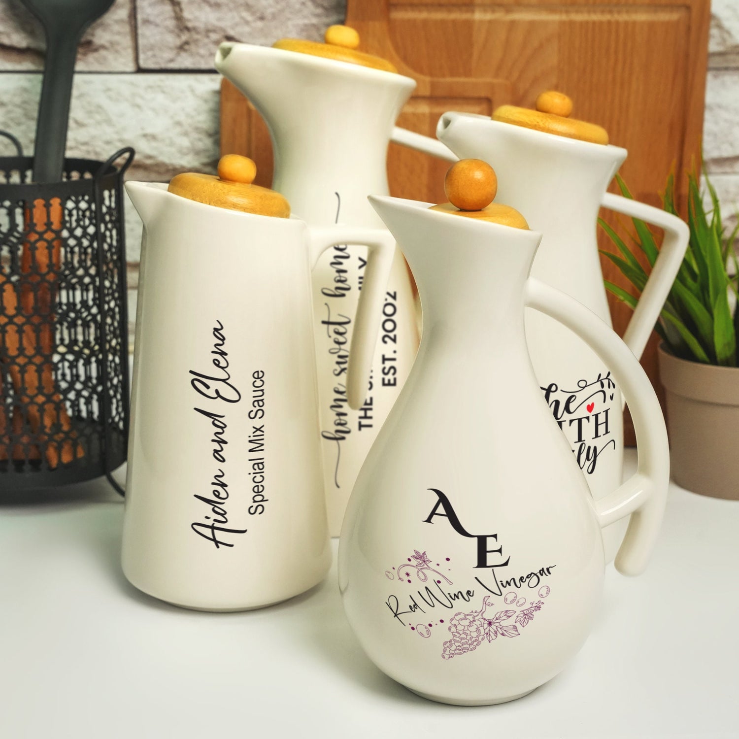 Custom Family Name Ceramic Olive Oil Dispenser, Housewarming Gift, Couple Gifts, Personalized Condiment Bottles, Ceramic Kitchen Accessories