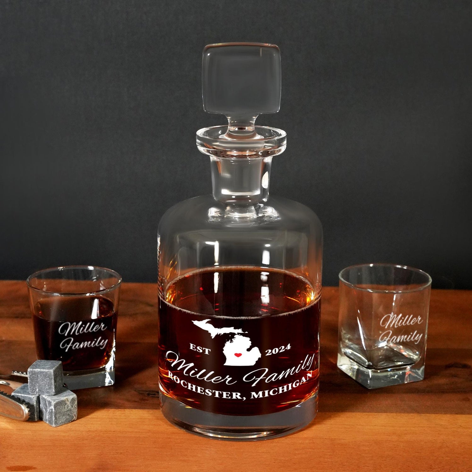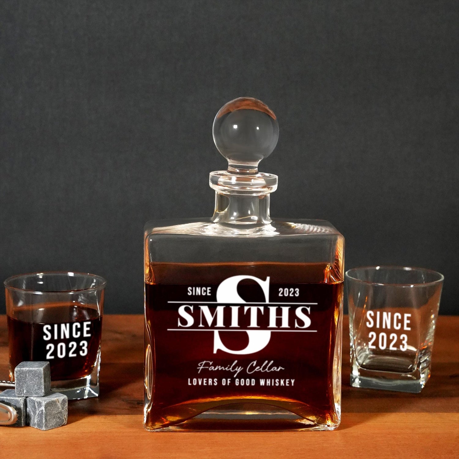 Custom Liquor Whiskey Decanter Personalized Glass Bottle, Anniversary Gift for Him, Couple Housewarming Gift, Bourbon Decanter, Barware