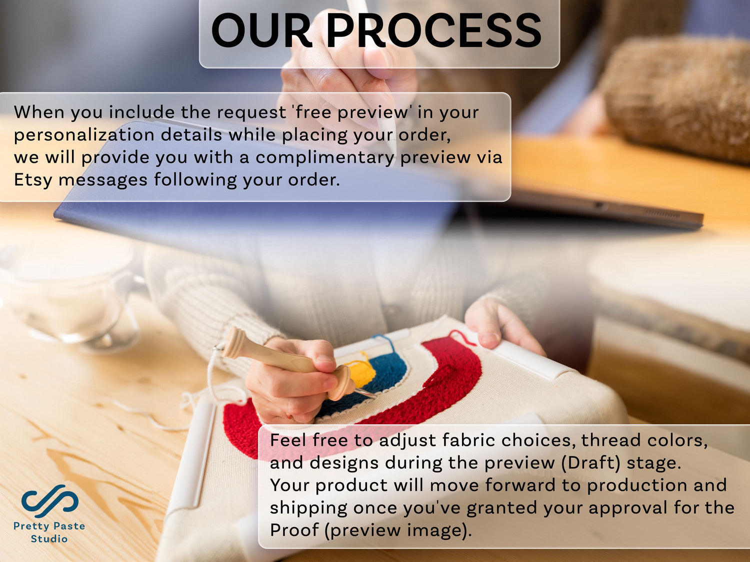 A Story Told in Stitches: Each pillow features a unique punch needle embroidery design, showcasing the pride of your chosen state and personalized with your new address. It's a beautiful way to mark the start of your new adventure.