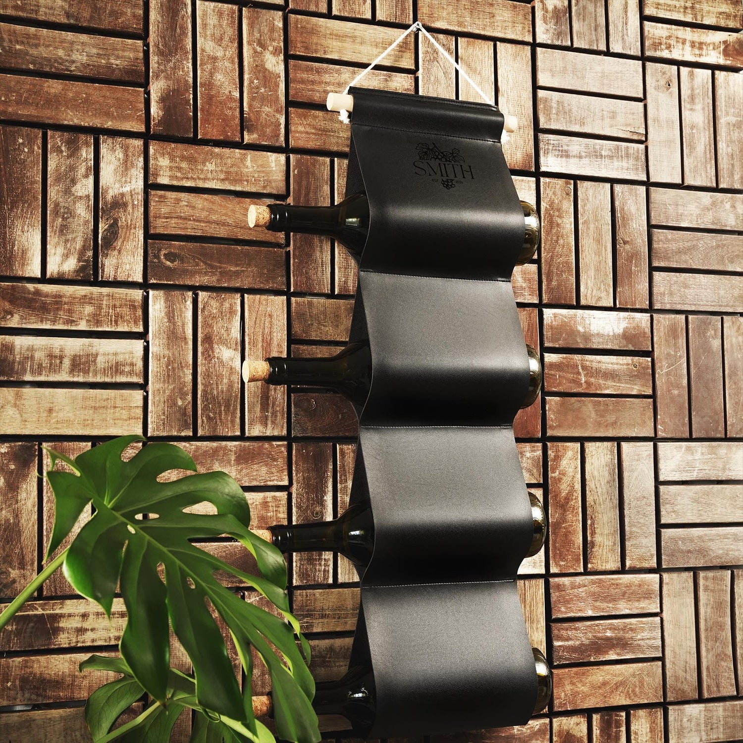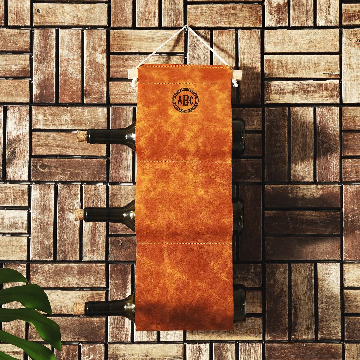 Custom Monogrammed Leather Wine Bottle Holder, Wall Hanging Wine Rack, Home Bar Wall Art, Wedding Gift, Personalized Rustic Wine Storage