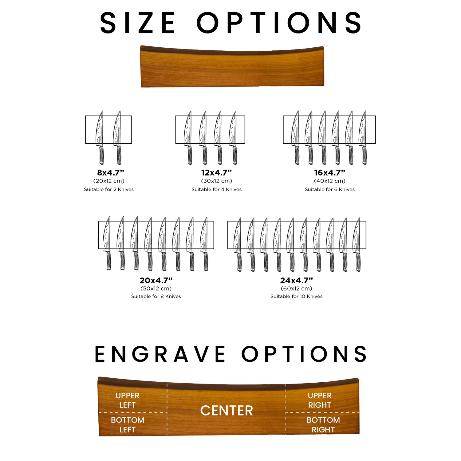 Transform your kitchen into a haven of functionality and cherished memories with our exquisite handcrafted magnetic knife holders. Meticulously made from solid walnut, each piece is more than just a storage solution – it's a unique canvas to celebrate life's most precious people and moments. Imagine a stunning display that’s deeply personal, thoughtfully designed, and masterfully crafted to bring warmth and order to your culinary space.