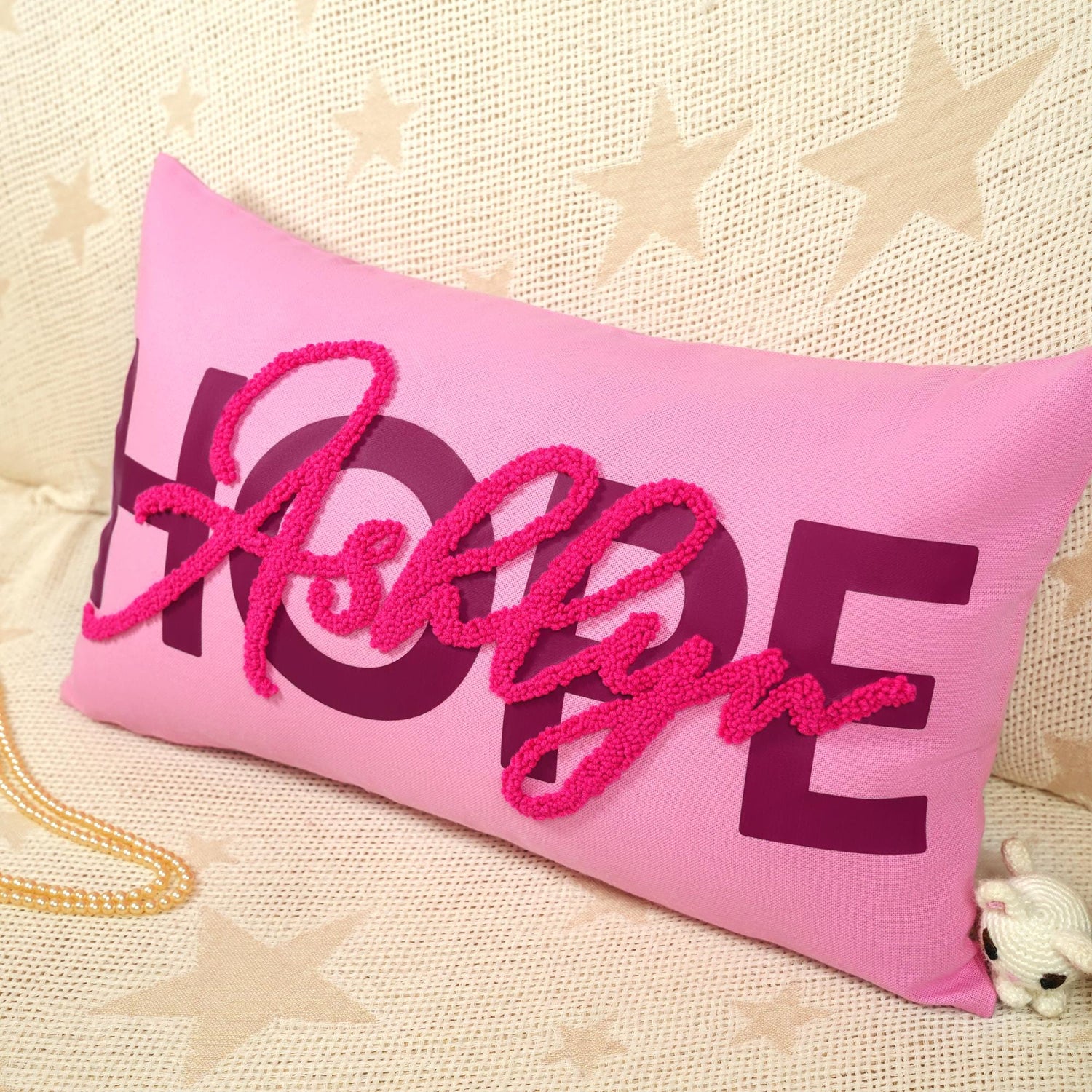 Personalized Baby Girl Nursery Pillow, Custom Monogram Punch Needle Pillowcase, Newborn Baby Gift, Baby Room Crib Decor, First Birthday Gift