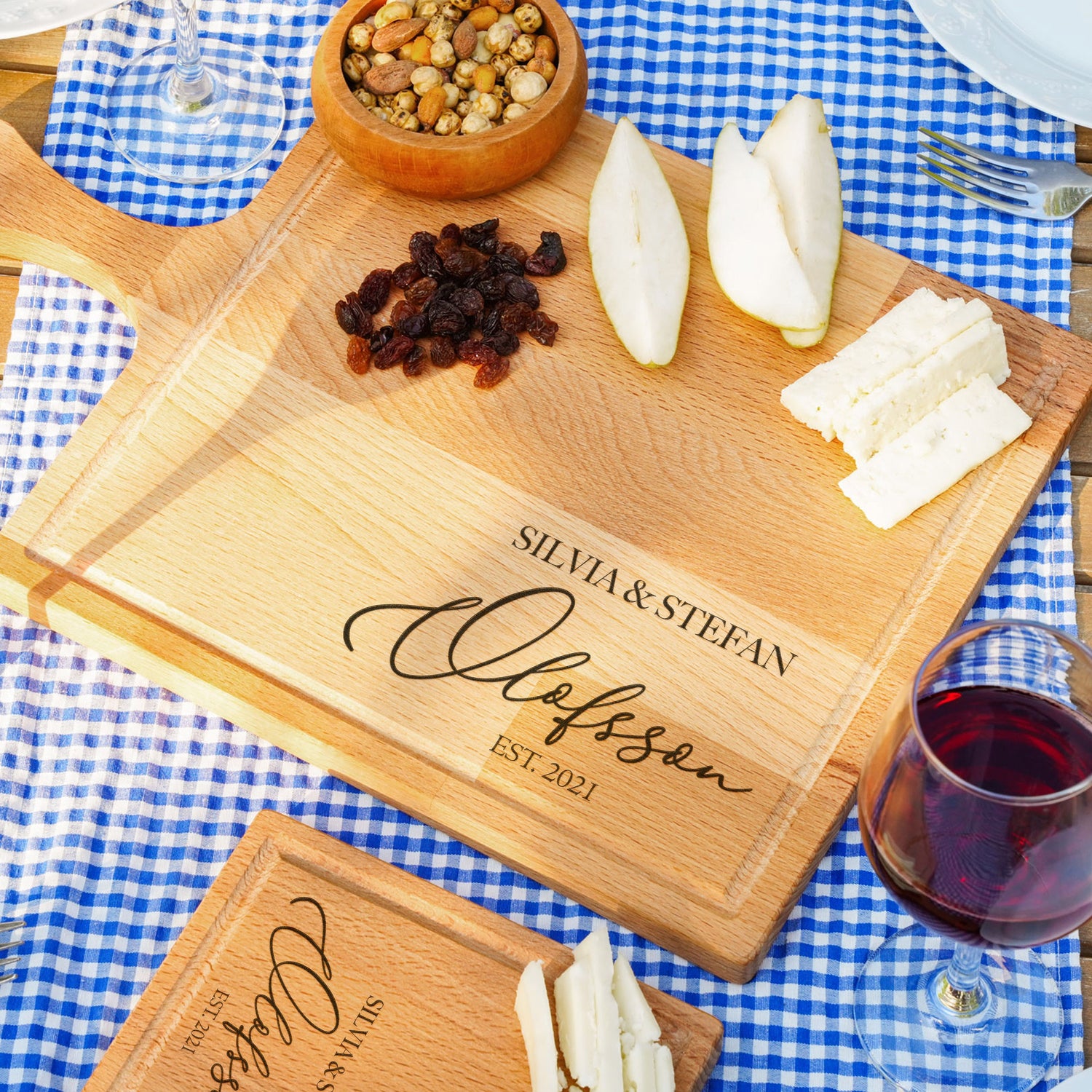 Elevate your kitchen with a beautiful, handcrafted cutting board that's both functional and unique. This custom-engraved cutting board makes a thoughtful gift for weddings, anniversaries, housewarmings, holidays, or any special occasion.