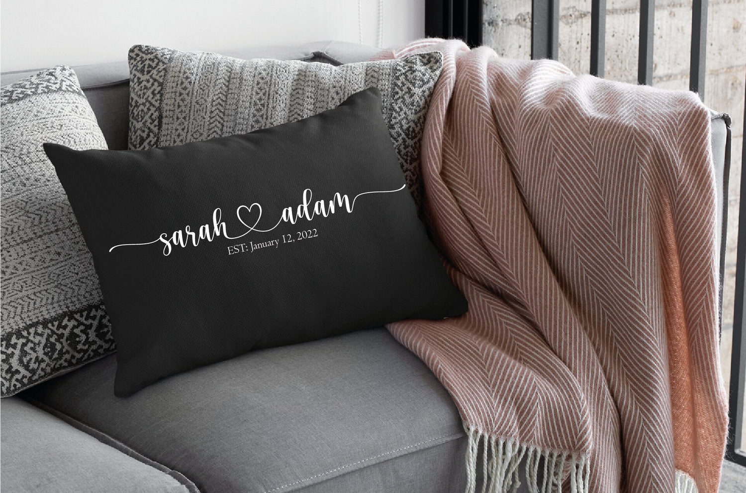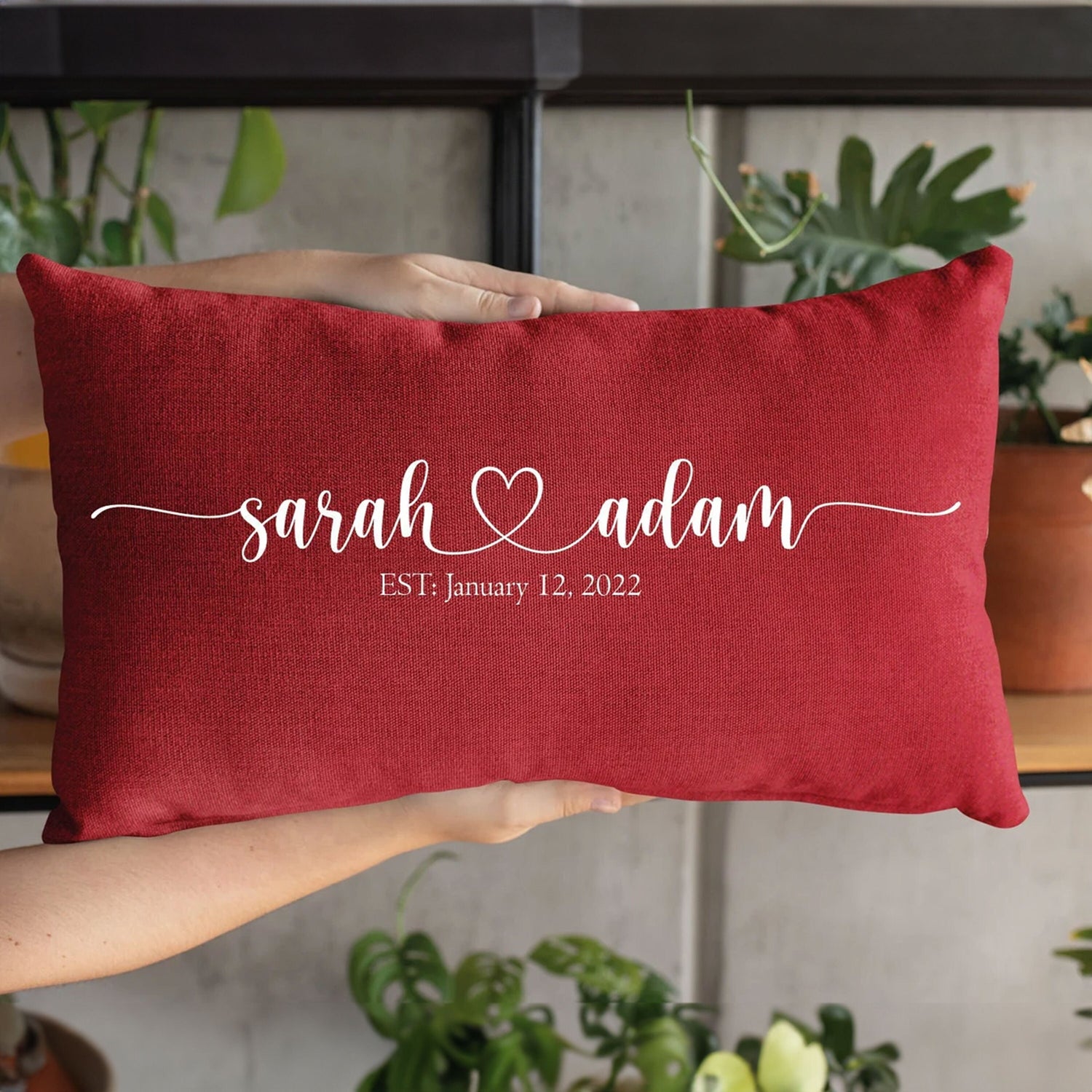 Personalized Couple Name Valentine Red Pillow, Custom Cushion, Valentine Decor, Engagement Gift, Valentine Gift Idea, Wedding Gift, Decor is backordered and will ship as soon as it is back in stock.