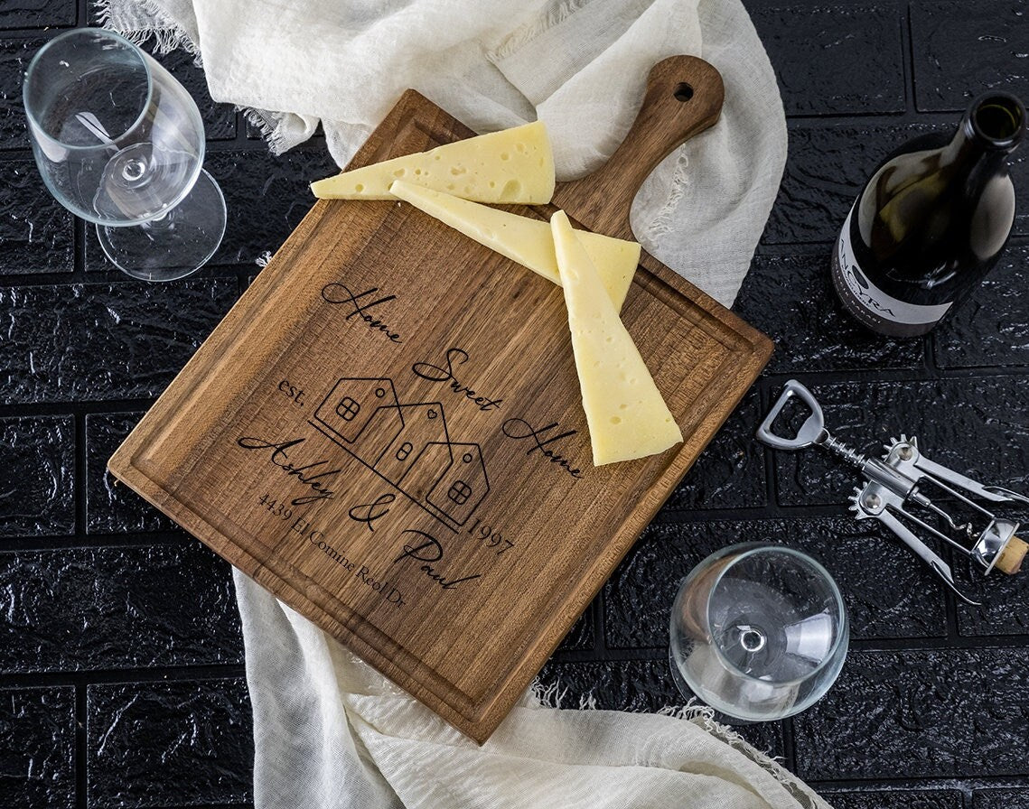 Personalized Sweet Home Cutting Board, Custom Charcuterie Board, Realtor Closing Gift, Housewarming Gift, New Home Gift, Engraved Wood Board