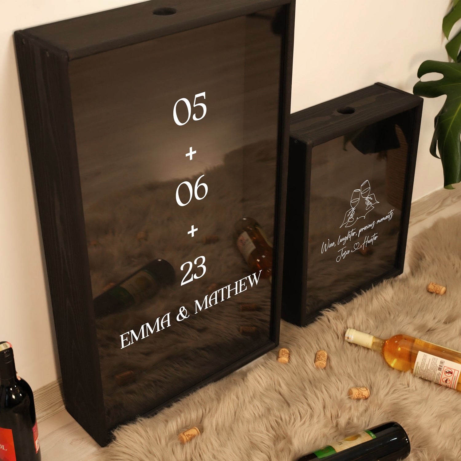 Personalized Wine Cork Holder, Custom Gift for Couple, Wedding Gift, Housewarming Gift, Anniversary Gift, Wooden Wall Hang Wine Memory Box