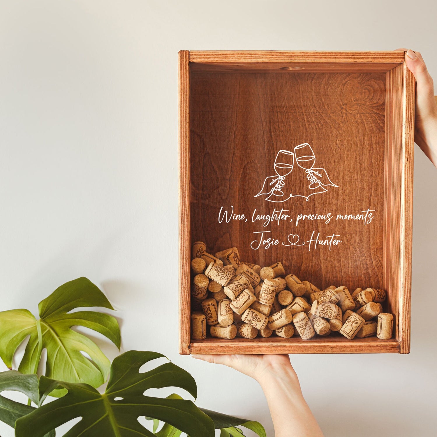 Personalized Wine Cork Holder Wooden Christmas Gift for Couple, Housewarming Gift, Custom Wedding Gift, Memory Wooden Cork Box, Anniversary