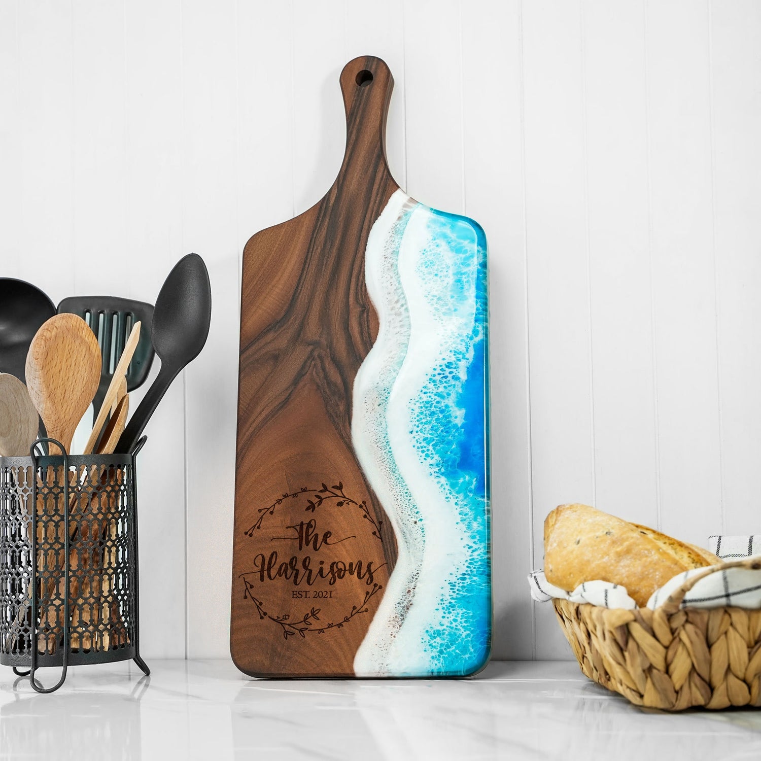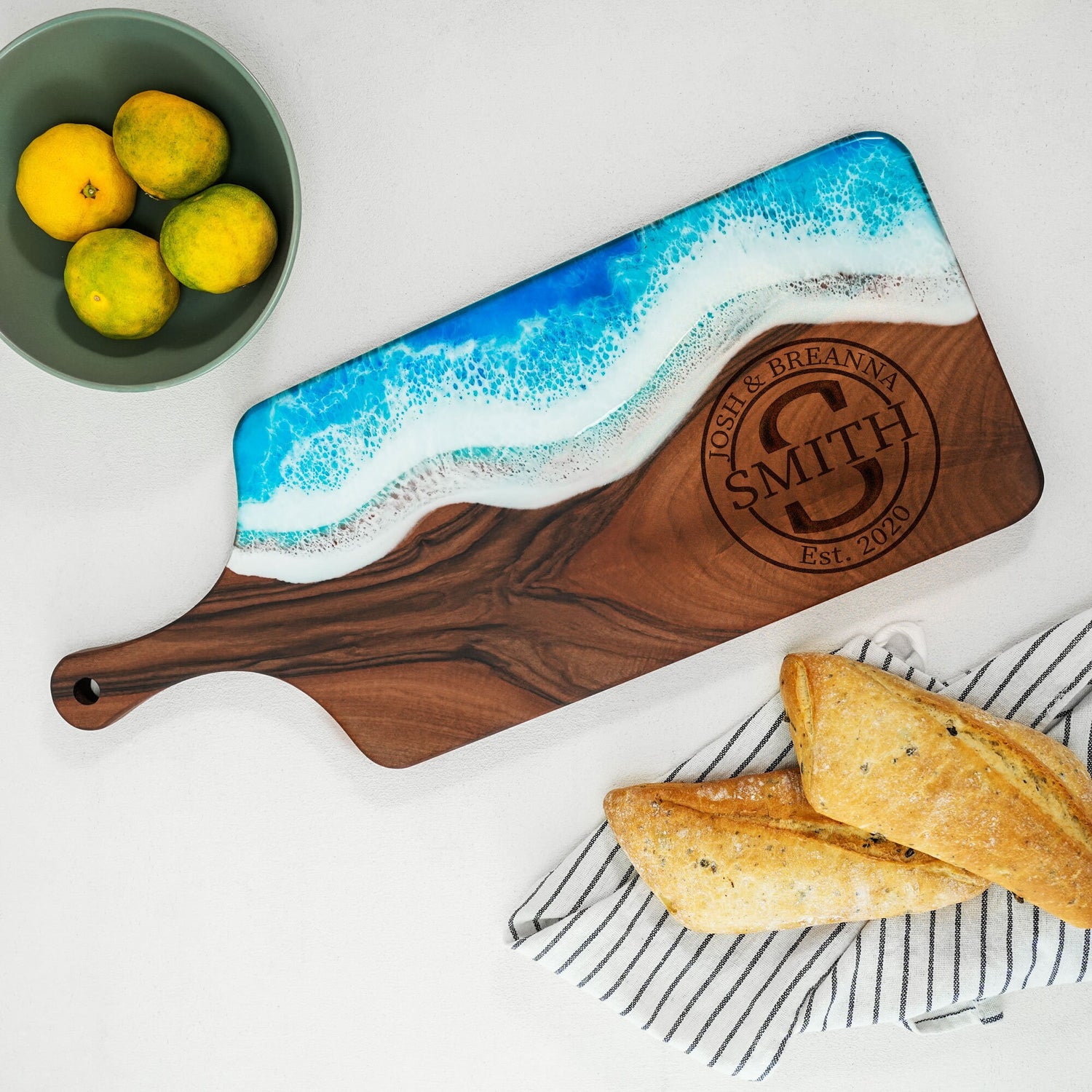 Resin Ocean Personalized Cutting Board, Housewarming Gift for Couple, Wedding Gift, Christmas Anniversary Gift Idea, Epoxy Charcuterie Board