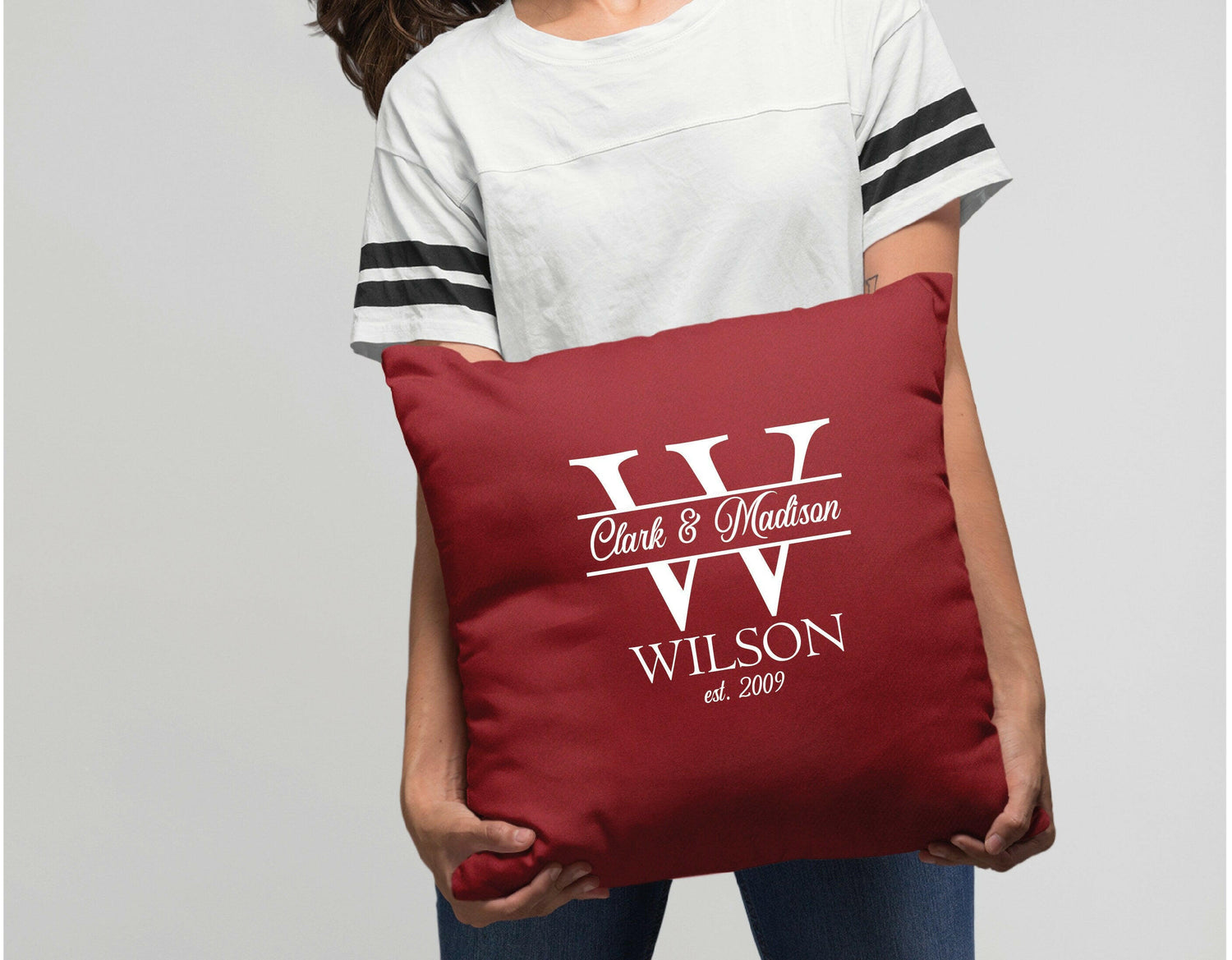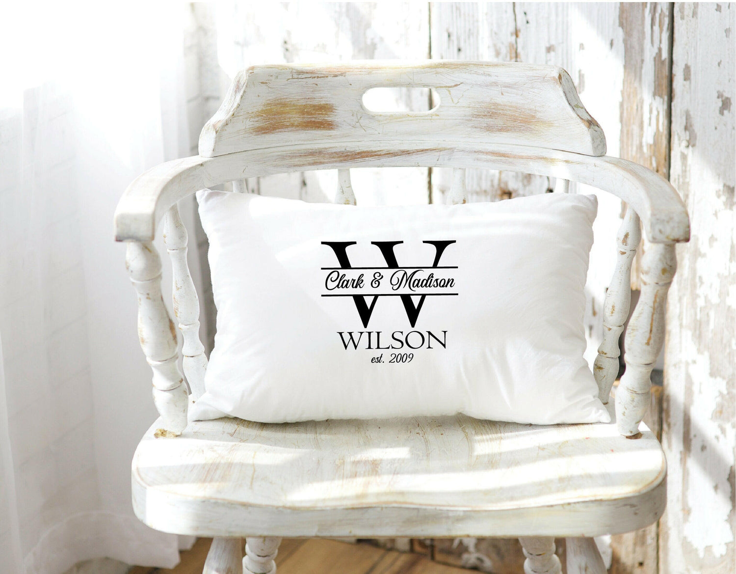Make a lasting impression with this unique and thoughtful wedding gift! This personalized pillow, featuring the newlyweds' last name, is a charming way to celebrate their new chapter together and add a touch of elegance to their home.