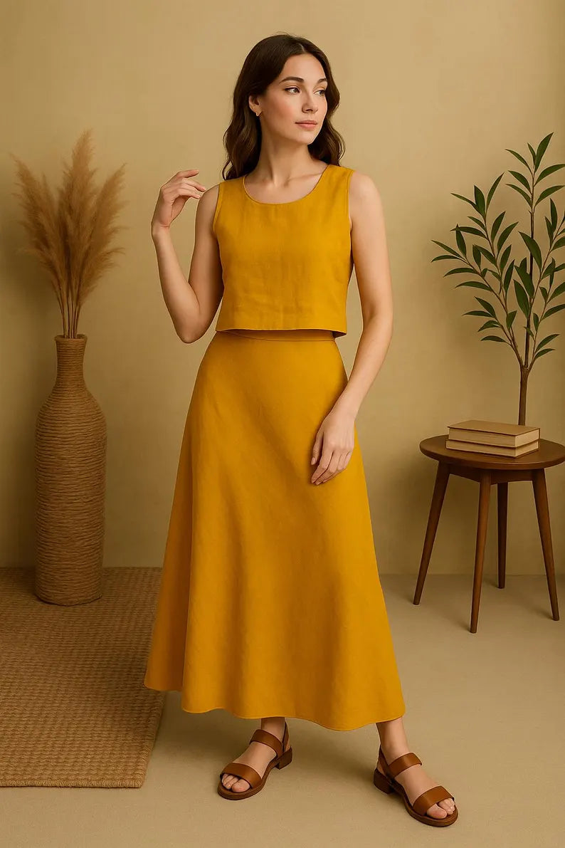 Experience the perfect blend of elegance and ease with our bias-cut linen skirt. Designed to move as you do, this endlessly wearable piece floats with a graceful, fluid motion. Crafted from airy, pre-washed linen, the skirt is cut on the bias to create a beautiful, figure-skimming drape that flatters without clinging. The full elastic waistband ensures slip-on comfort and a flexible fit, making it a go-to for effortless style, from morning to night.