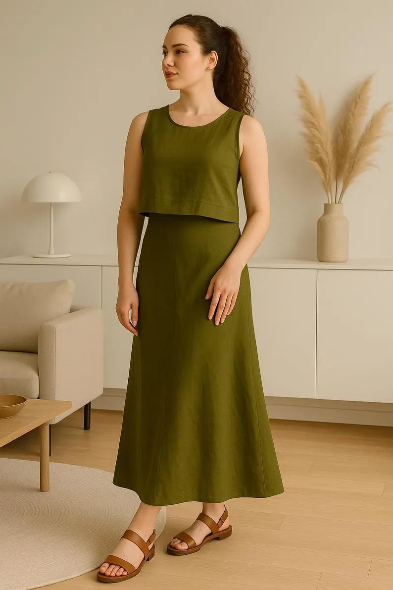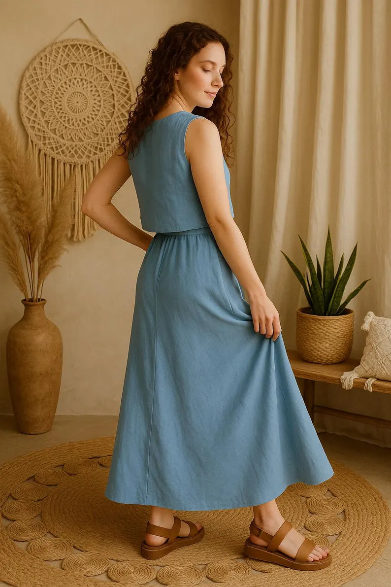 High Waist Linen Maxi Skirt for Women, A-Line Long Skirt, Flowy Bias Cut Skirt, Summer Linen Dress, Minimal Women Clothing, Capsule Wardrobe