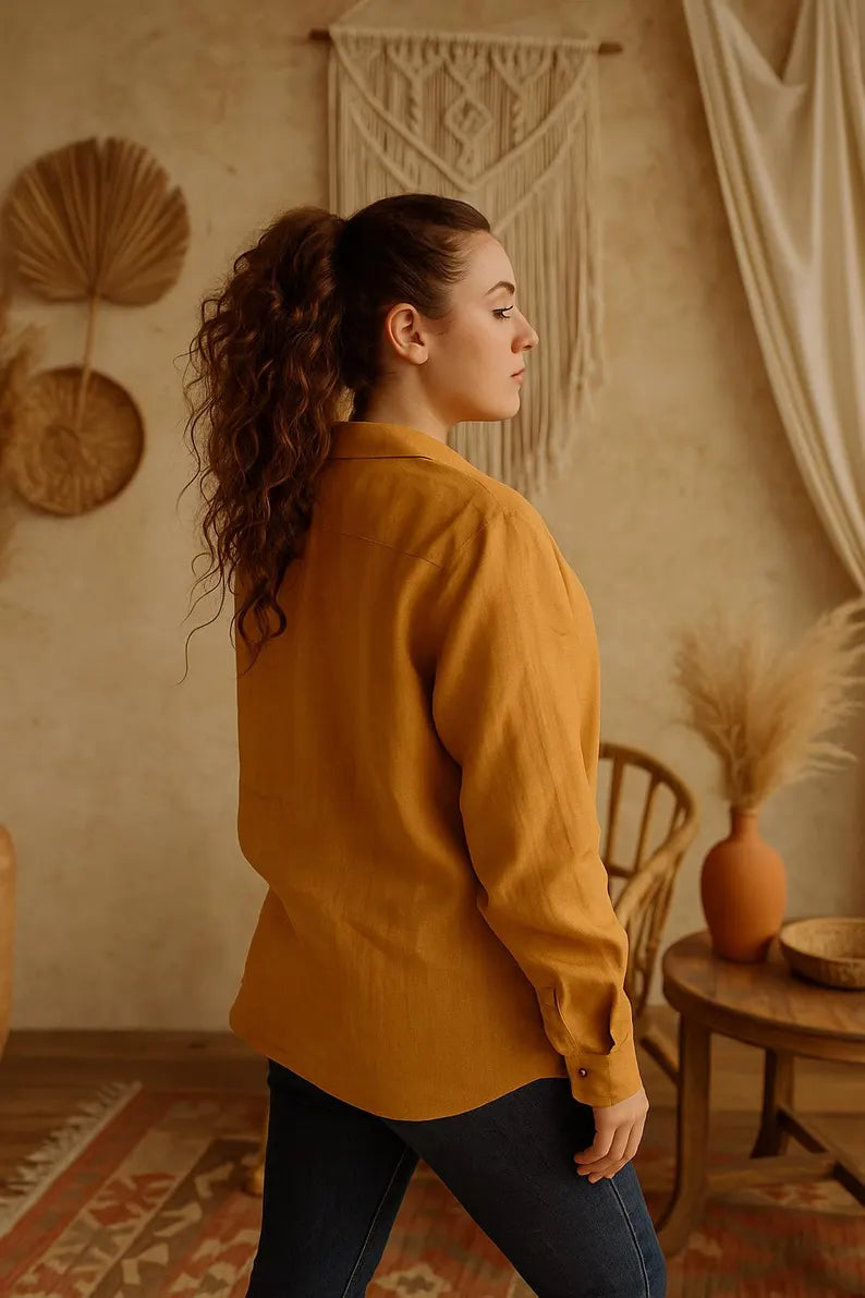 Linen Button Up Shirt for Women, Long Sleeve Linen Shirt, Classic Linen Shirt, Oversized Linen Shirts, Woman Linen Tops, Office Work Outfits