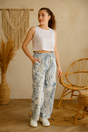 Linen Cargo Pants, Wide Leg Elastic Waist Pants, Summer Printed Trousers, Linen for Womens, Relaxed Linen Cargo Pants, Boho Linen Clothing