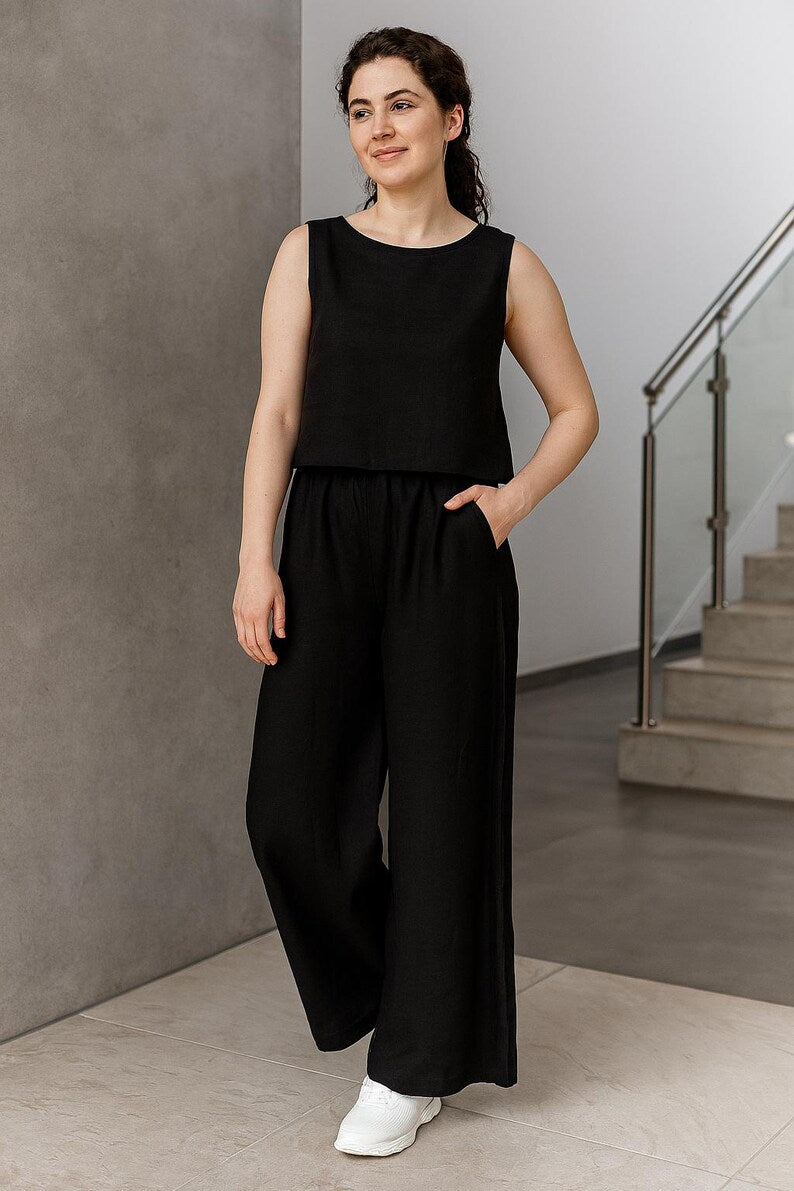 Linen Culotte Pants, Linen Palazzo Pants, Wide Leg Linen Trousers Women, Relaxed Fit Linen Summer Pants, Elastic Waist Wide Leg, Trousers