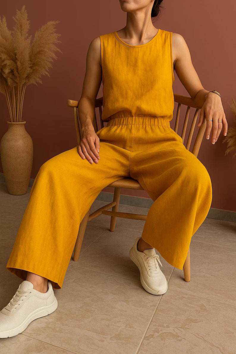 Embrace the essence of breezy, effortless style with our linen culotte pants. The definition of laid-back refinement, these endlessly wearable trousers are designed to float with you through your day. Featuring a chic, wide-leg silhouette and a comfortable full elastic waistband, they offer the perfect combination of polish and freedom. Whether you pair them with a simple cropped tank or a crisp button-down shirt, these culottes are a versatile foundation for any modern wardrobe.
