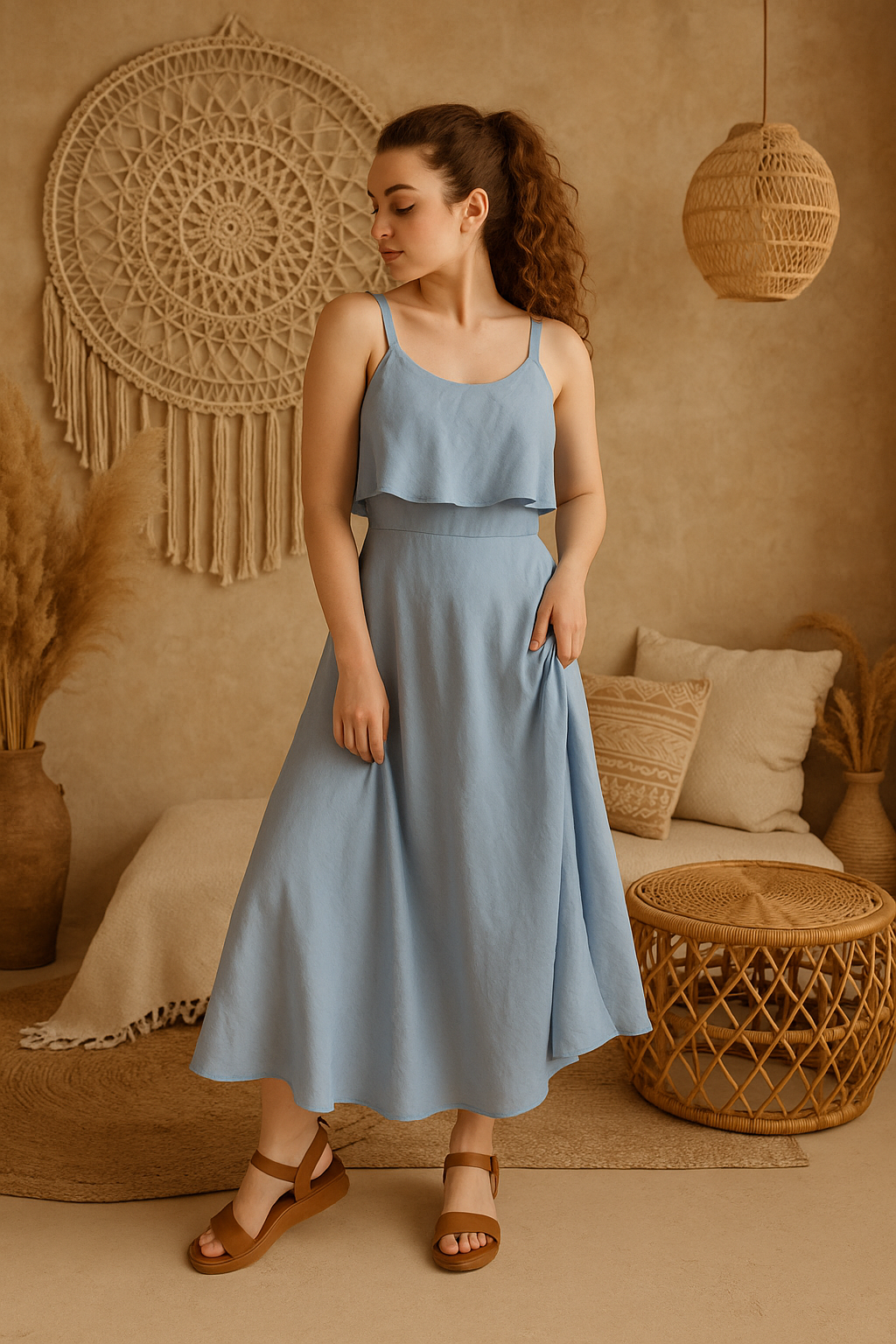 Effortless Linen Midi Summer Dress: Your Elegant A-Line Essential