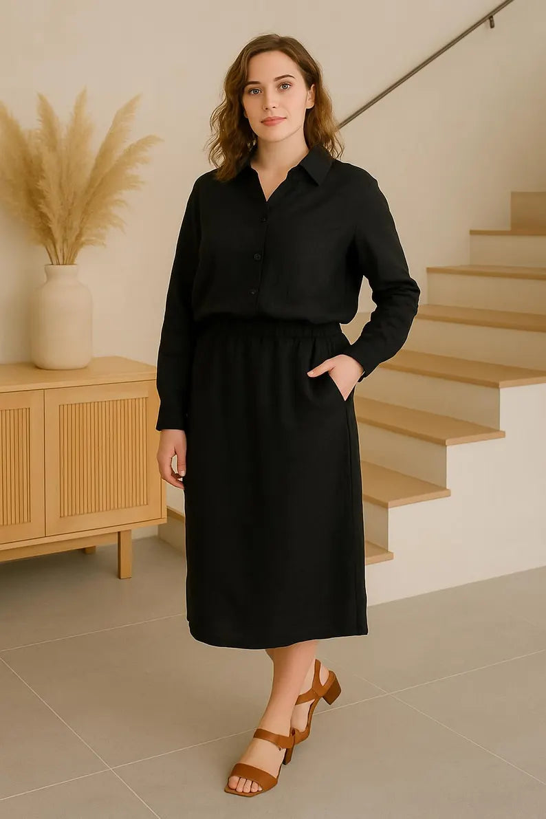 Embrace understated sophistication with our straight-cut linen midi skirt, a cornerstone of effortless style. This beautifully designed skirt offers clean lines and a sleek silhouette, crafted from naturally breathable washed linen for ultimate comfort. With a discreet side seam pocket for practicality and a design that transcends trends, this piece is made to be a versatile staple in your wardrobe. Dress it up or down; its timeless appeal ensures it will remain a cherished favorite for seasons to come.