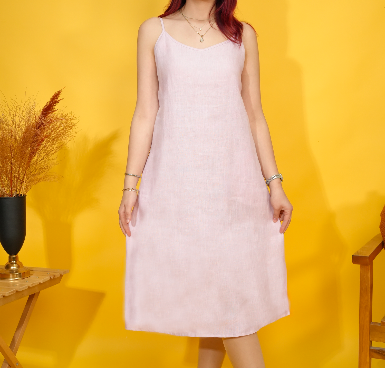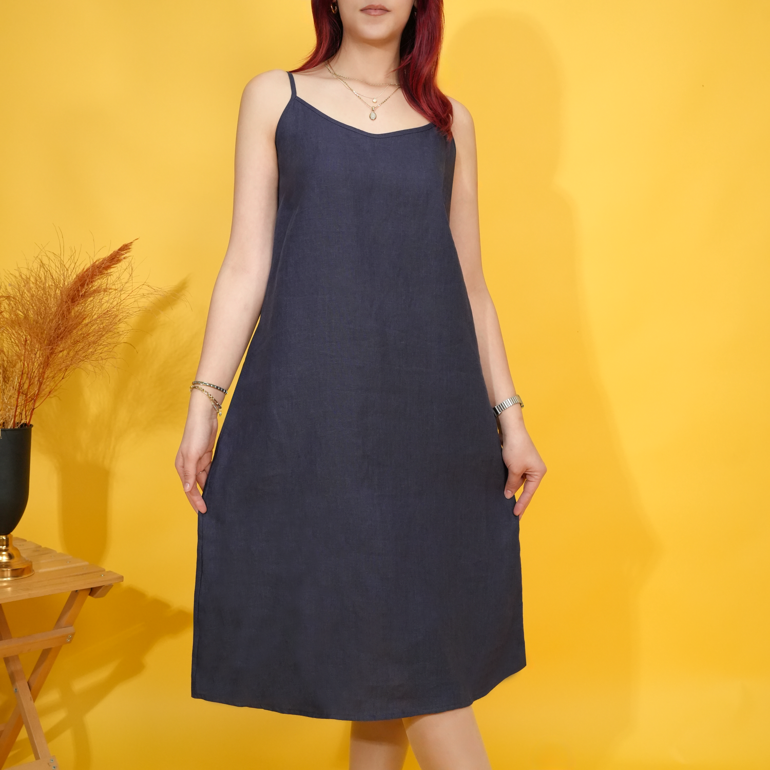 Embrace the carefree spirit of summer with our effortlessly stylish linen midi dress, your perfect companion for sun-drenched mornings and balmy twilight walks. This dress is designed for ultimate comfort and adaptable elegance, making it a true hero in your warm-weather wardrobe.