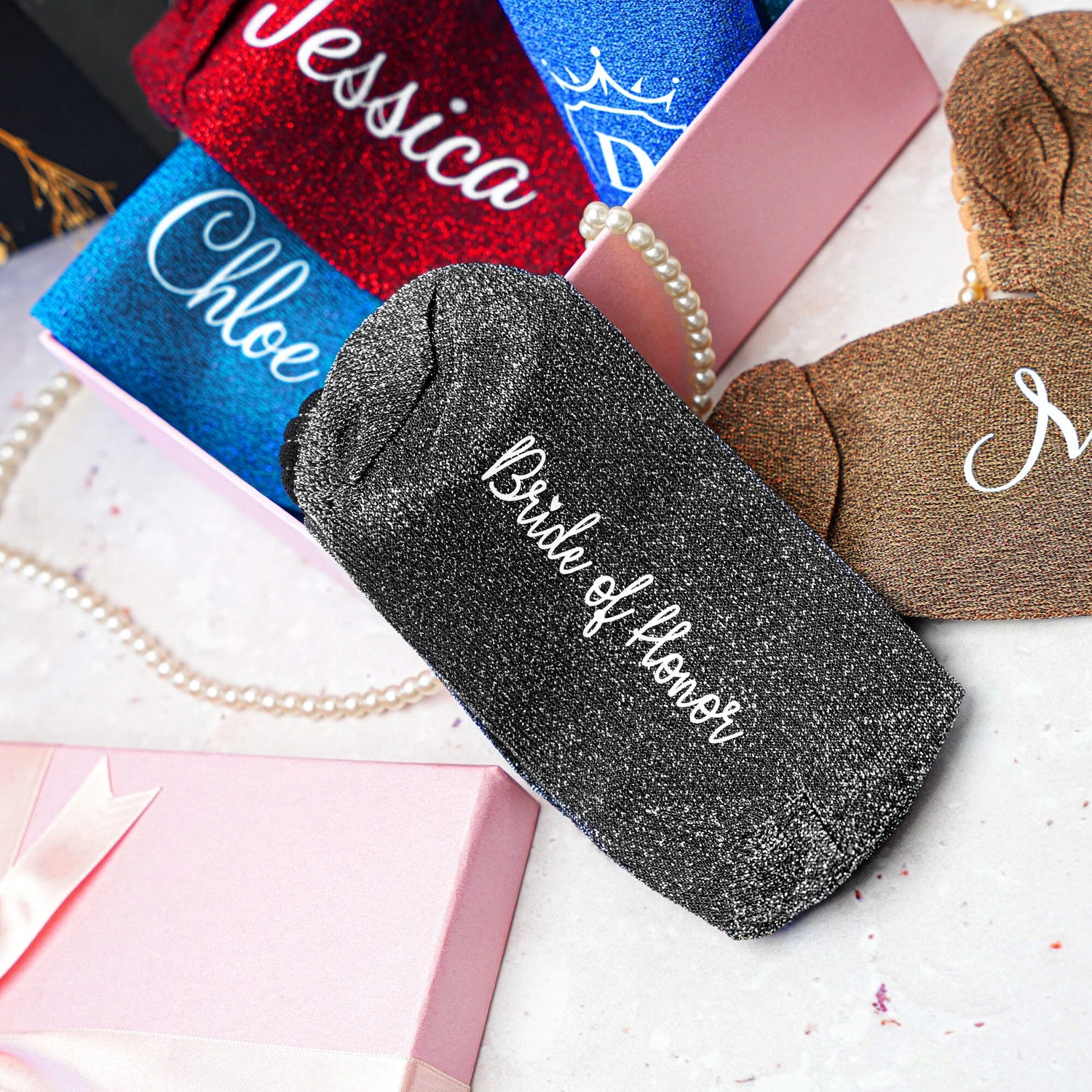 Personalized Bridesmaid Name Socks, Custom Bachelorette Party Favors for Guests, Maid of Honor Proposal Idea, Bridesmaid Gifts Box Stuffer