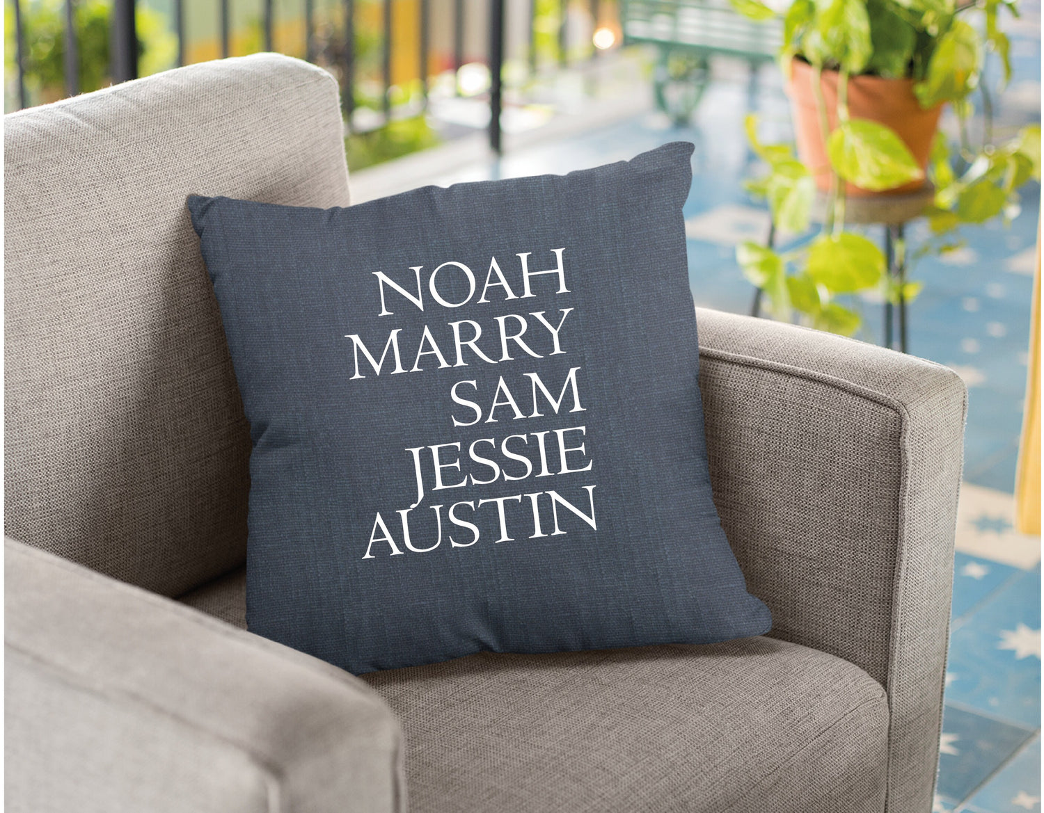 Personalized for Your Family: Create a unique and meaningful pillow by adding your family's names in elegant calligraphy. Choose your preferred font and text color for a truly personalized touch.