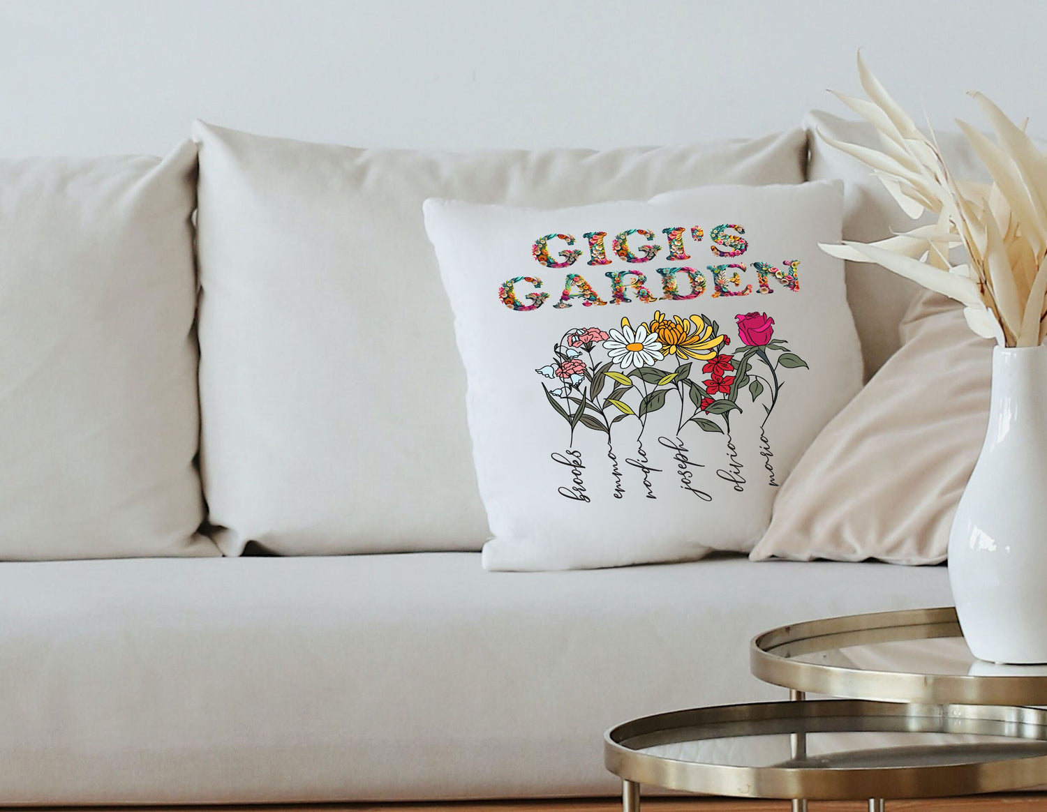 Personalized Grandmas Garden Pillow, Custom Birth Flower Pillow, Mothers Day Gift, Grandkids Name Pillow, Grandma Birthday Gift, Christmas