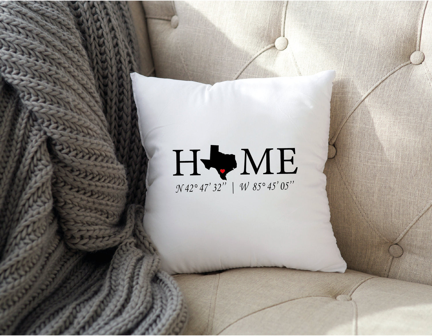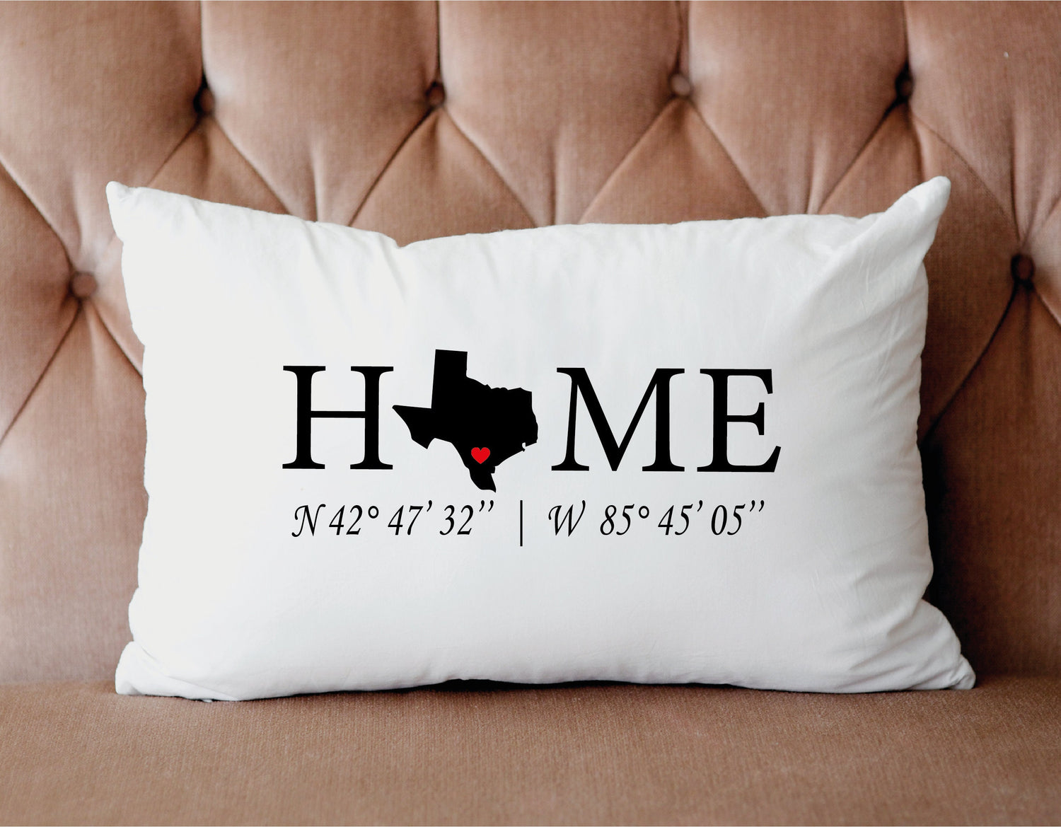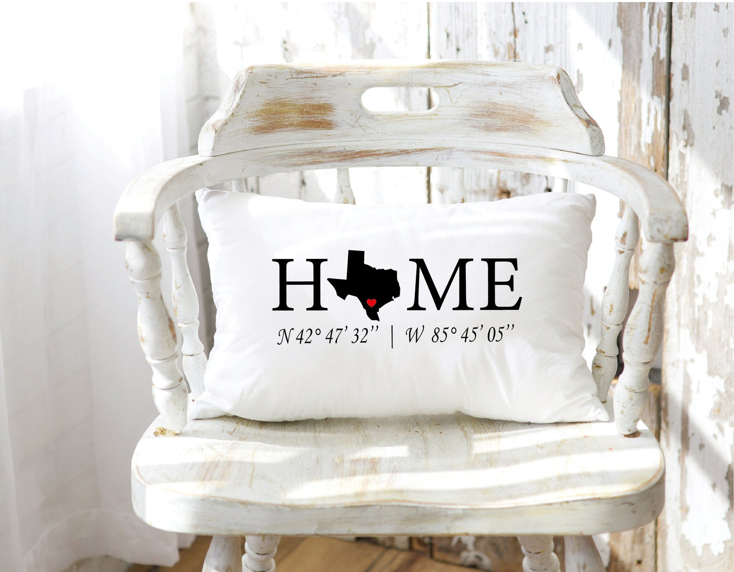 Personalized Latitude Longitude Pillow, Housewarming Gift, New Home Gift, Home State Pillow, Custom Lumbar Pillow, Our First Home Decor Gift