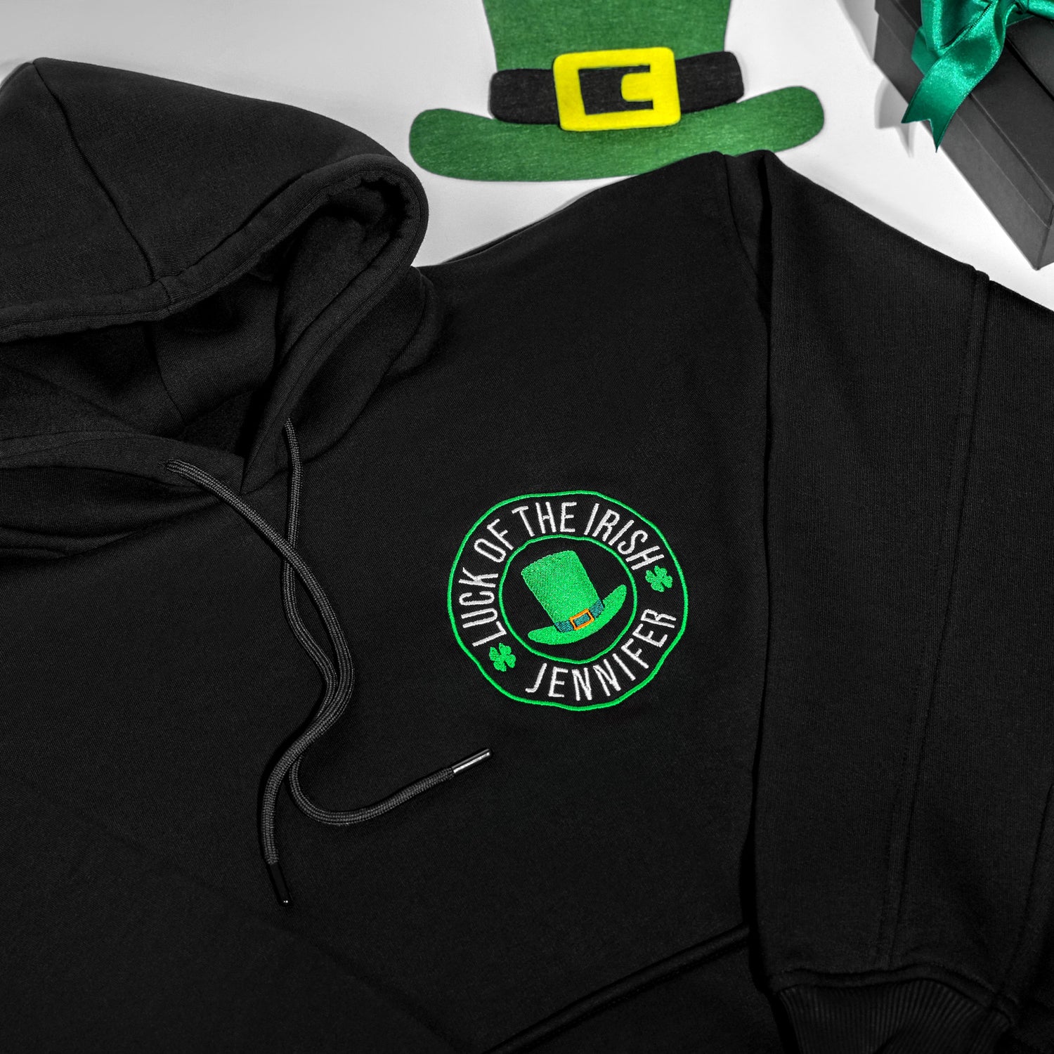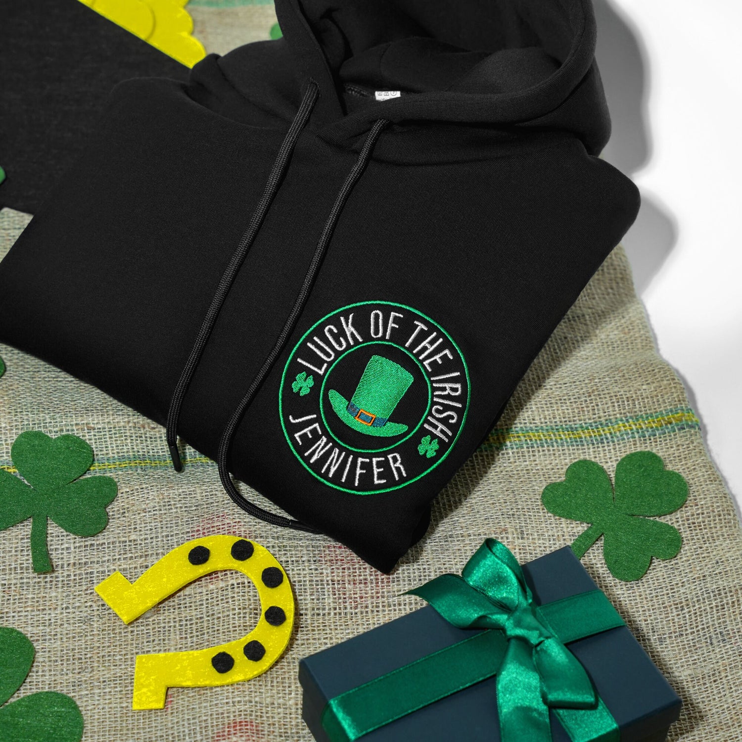 Personalized Leprechaun Hat Sweatshirt, Luck of The Irish, Lucky Charm Gifts, St. Patrick's Day Embroidery Sweatshirt, Funny Irish Hoodie