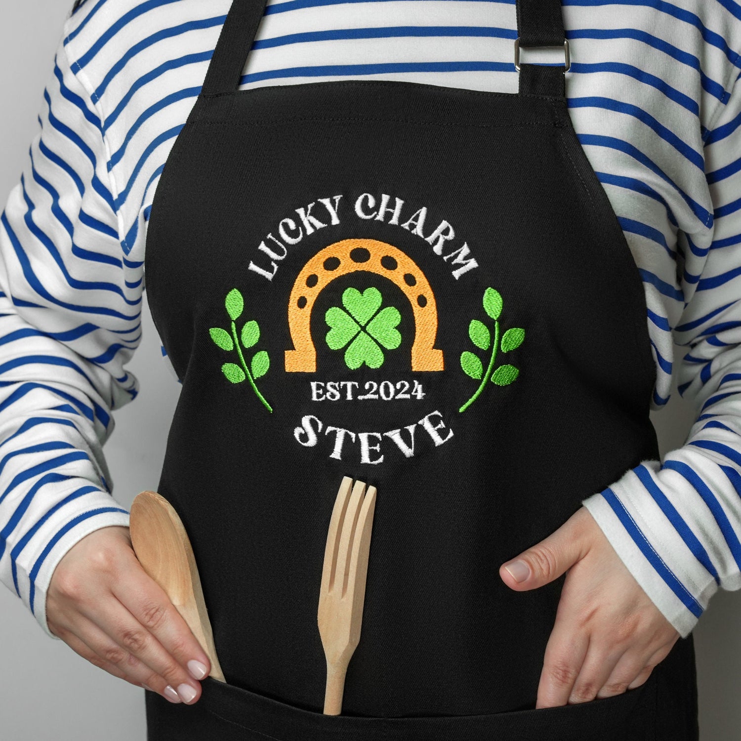 Personalized Lucky Charm Apron, St. Patrick's Day Cooking Apron, Irish Pub Apron, Irish Cooking Gifts, Custom Gifts, Apron with Pocket