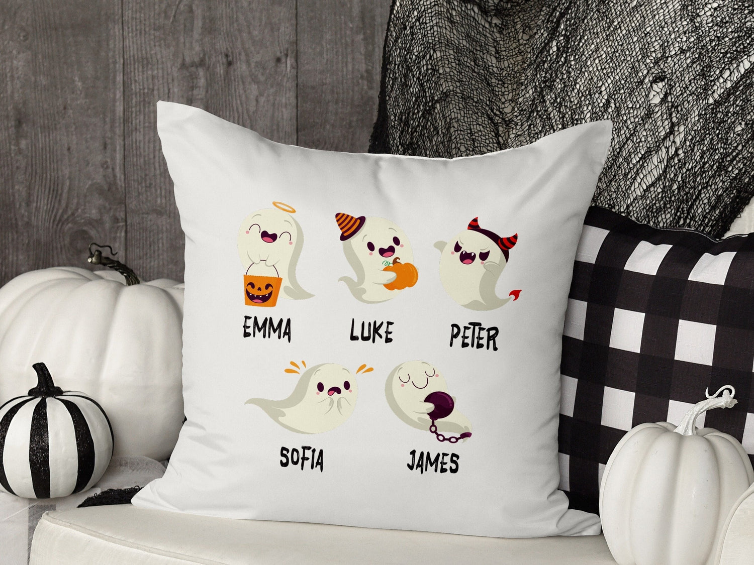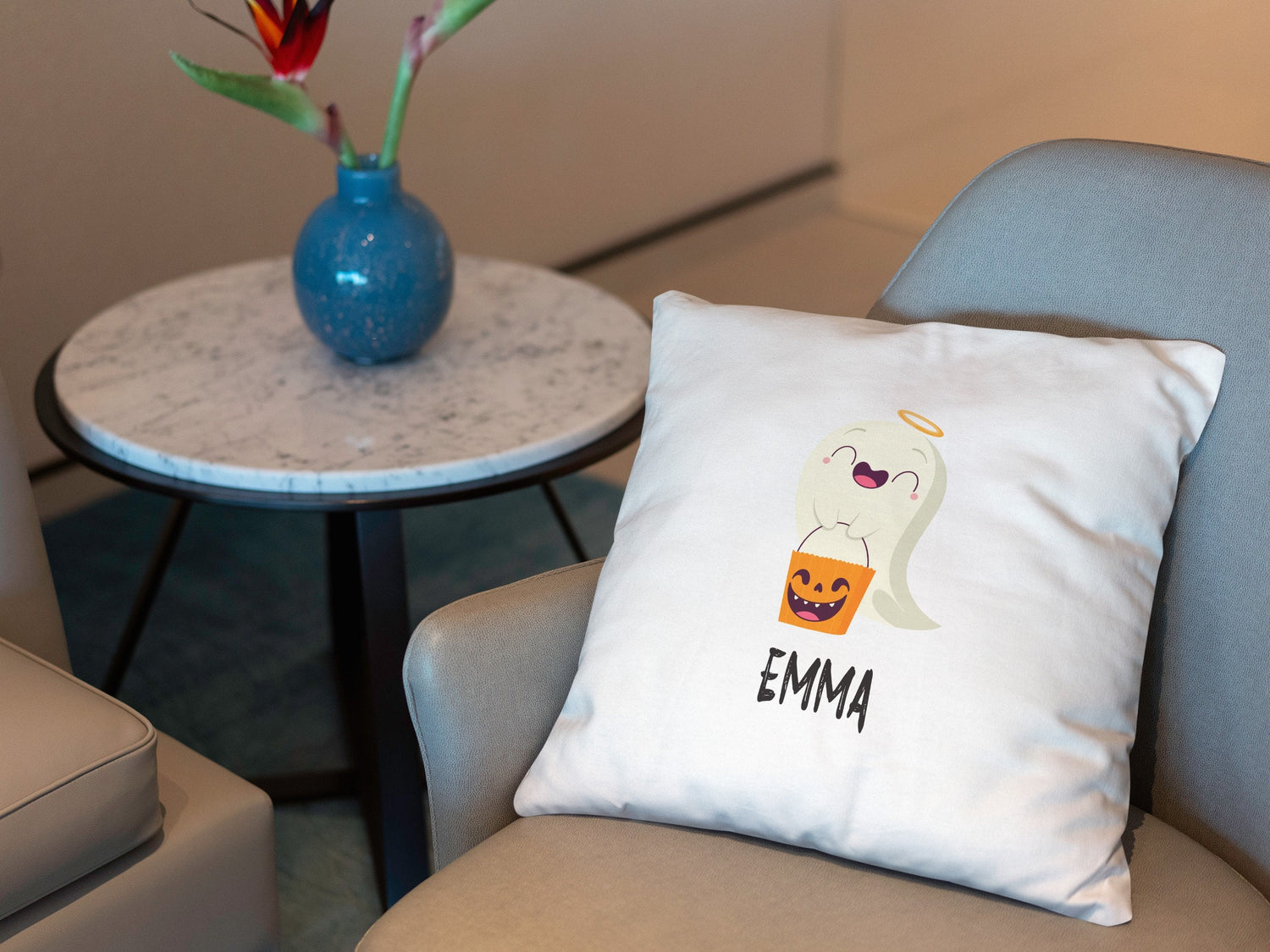 Decorate for Halloween: Create a festive atmosphere in your home or a child's room with a pillow featuring a playful ghost design and a personalized name.