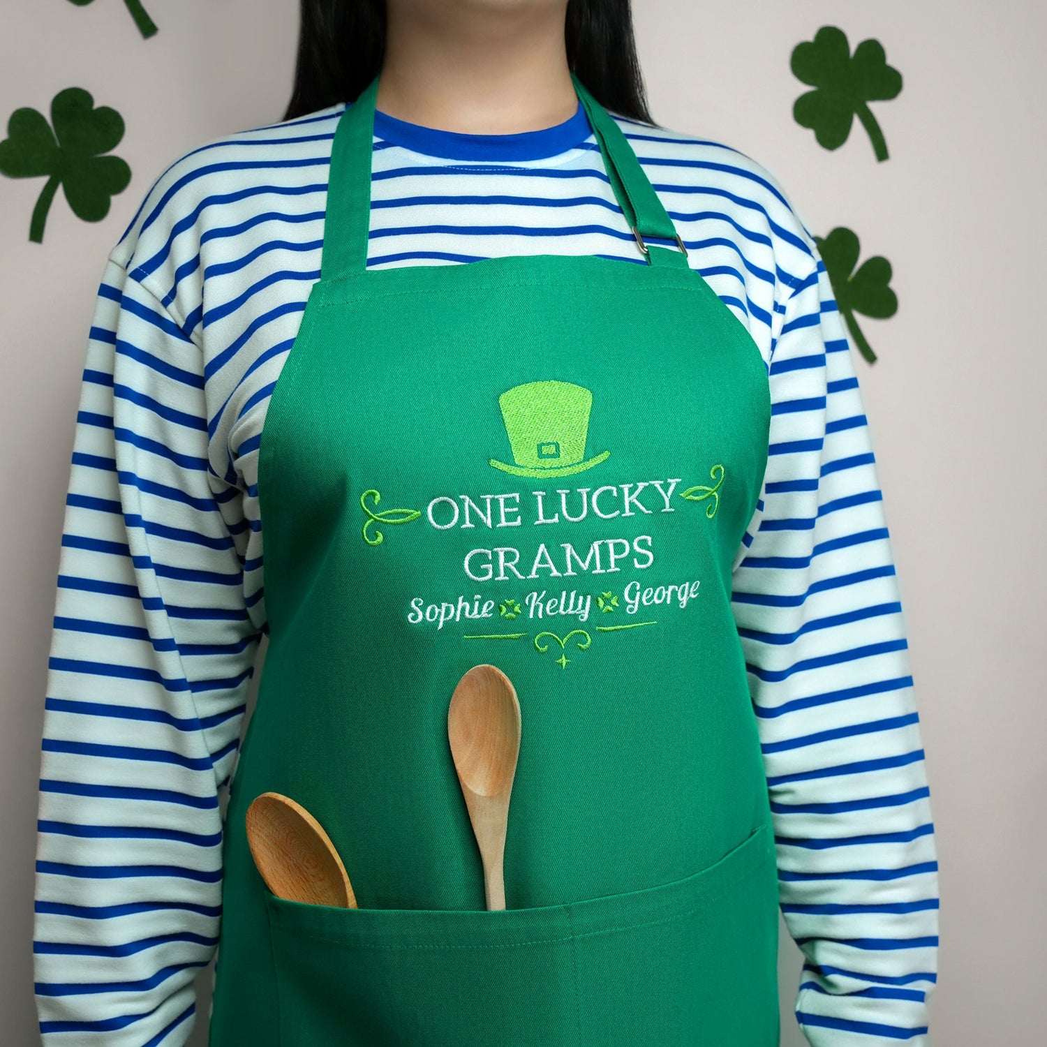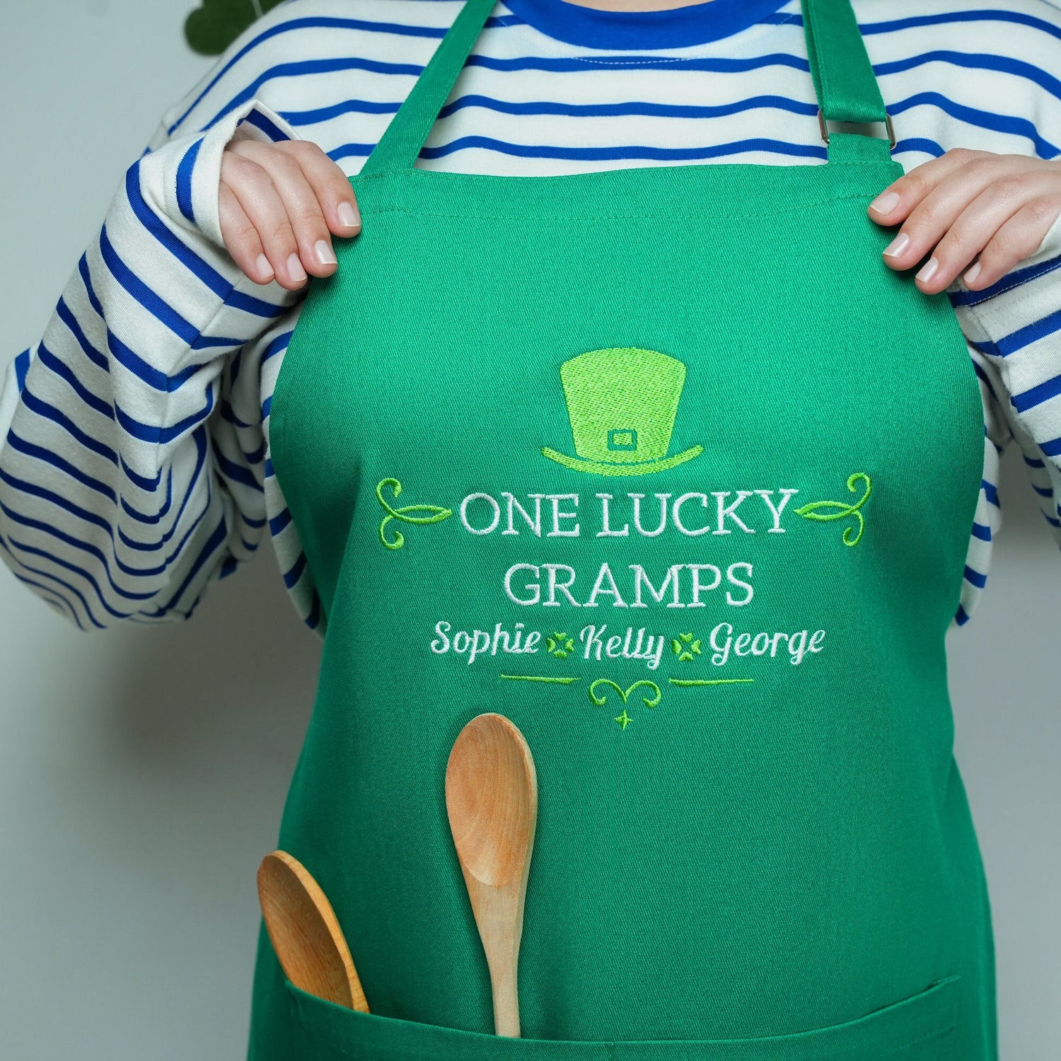 Personalized St. Patrick's Day Grandpa Grill Apron, Gift from Grandkids, Irish Grandparents Gifts, Grandmom Embroidery Apron, Leprechaun Hat