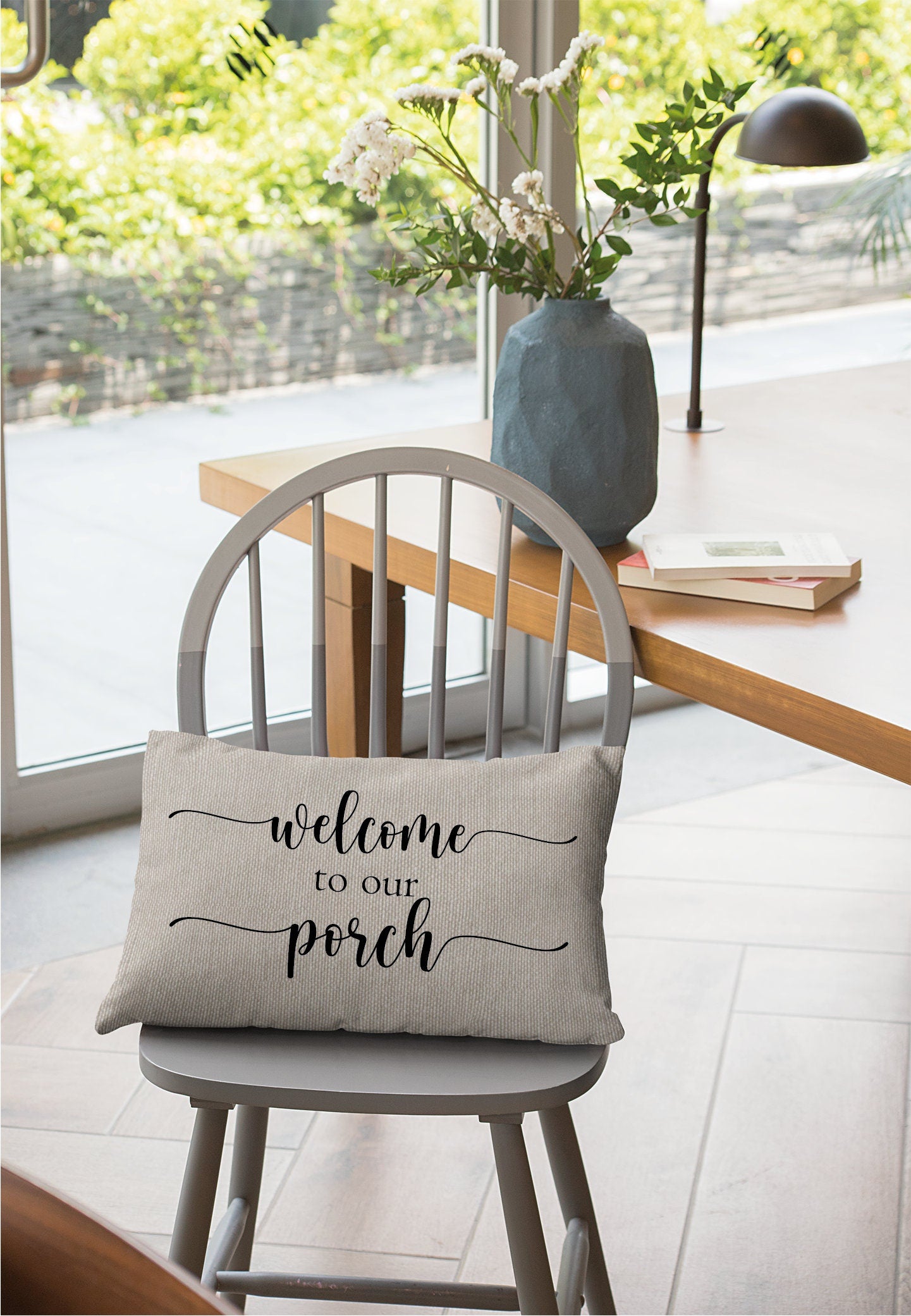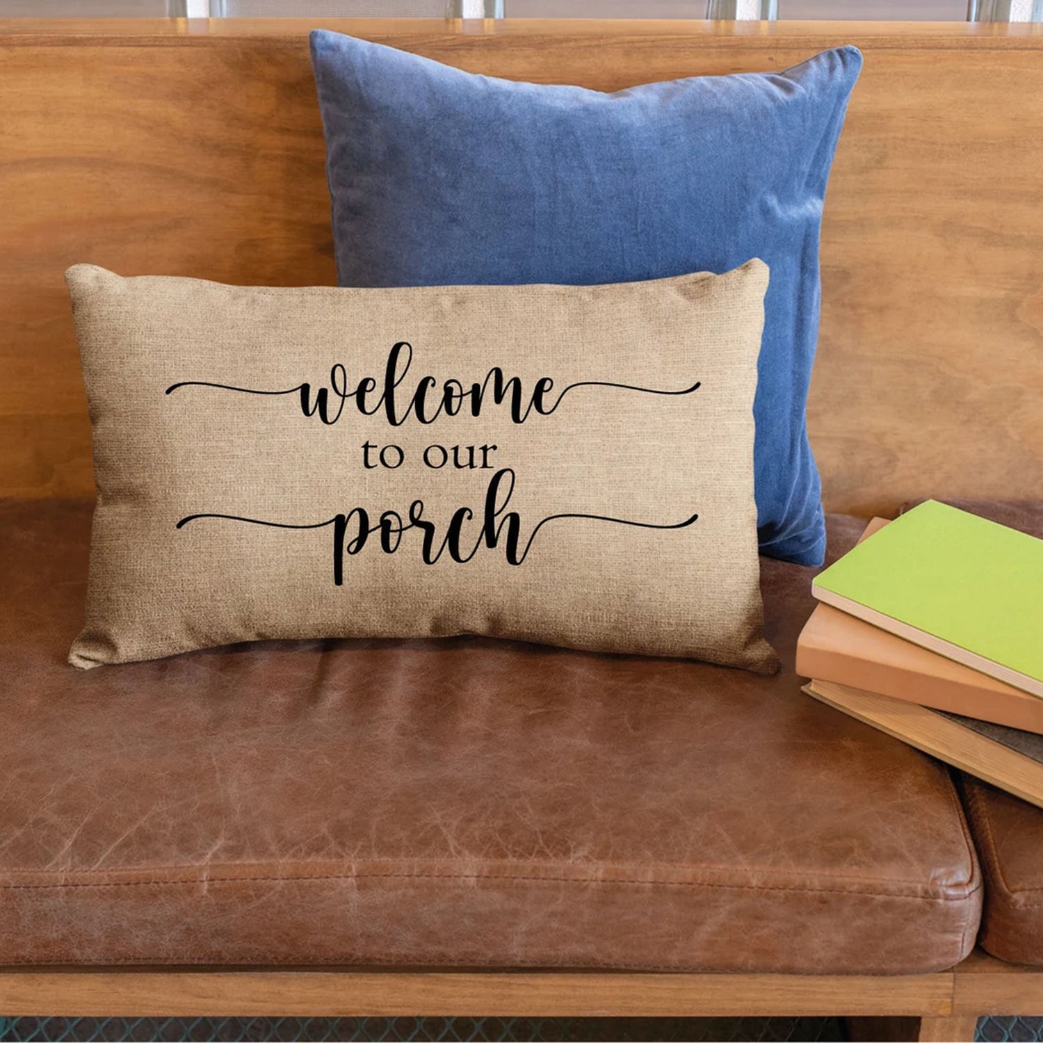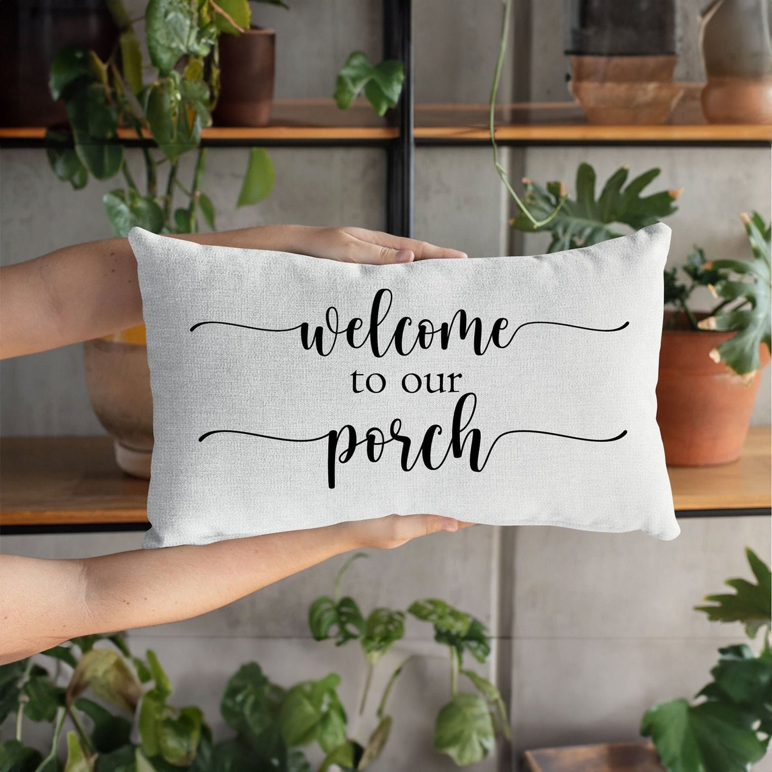 Adding a touch of warmth and personality: Make your porch feel like a cozy extension of your home with a pillow featuring a farmhouse-inspired design, a "Welcome to Our Porch" message, or a special personalized touch.