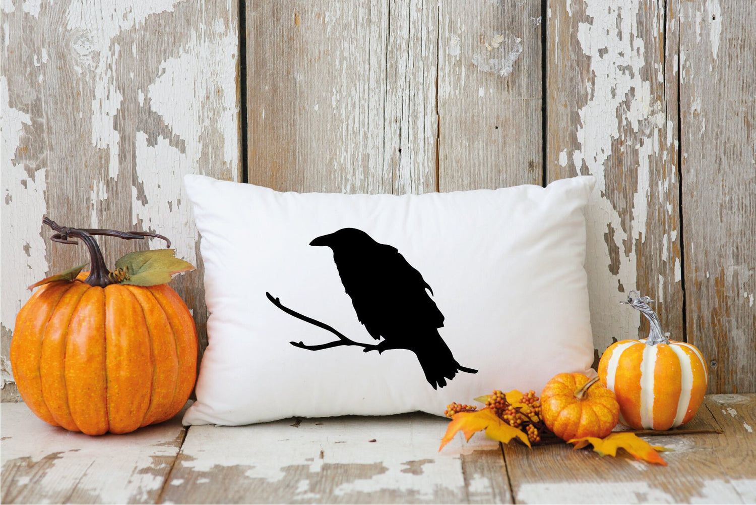 Add a touch of gothic charm to your Halloween décor with a custom raven pillow cover!