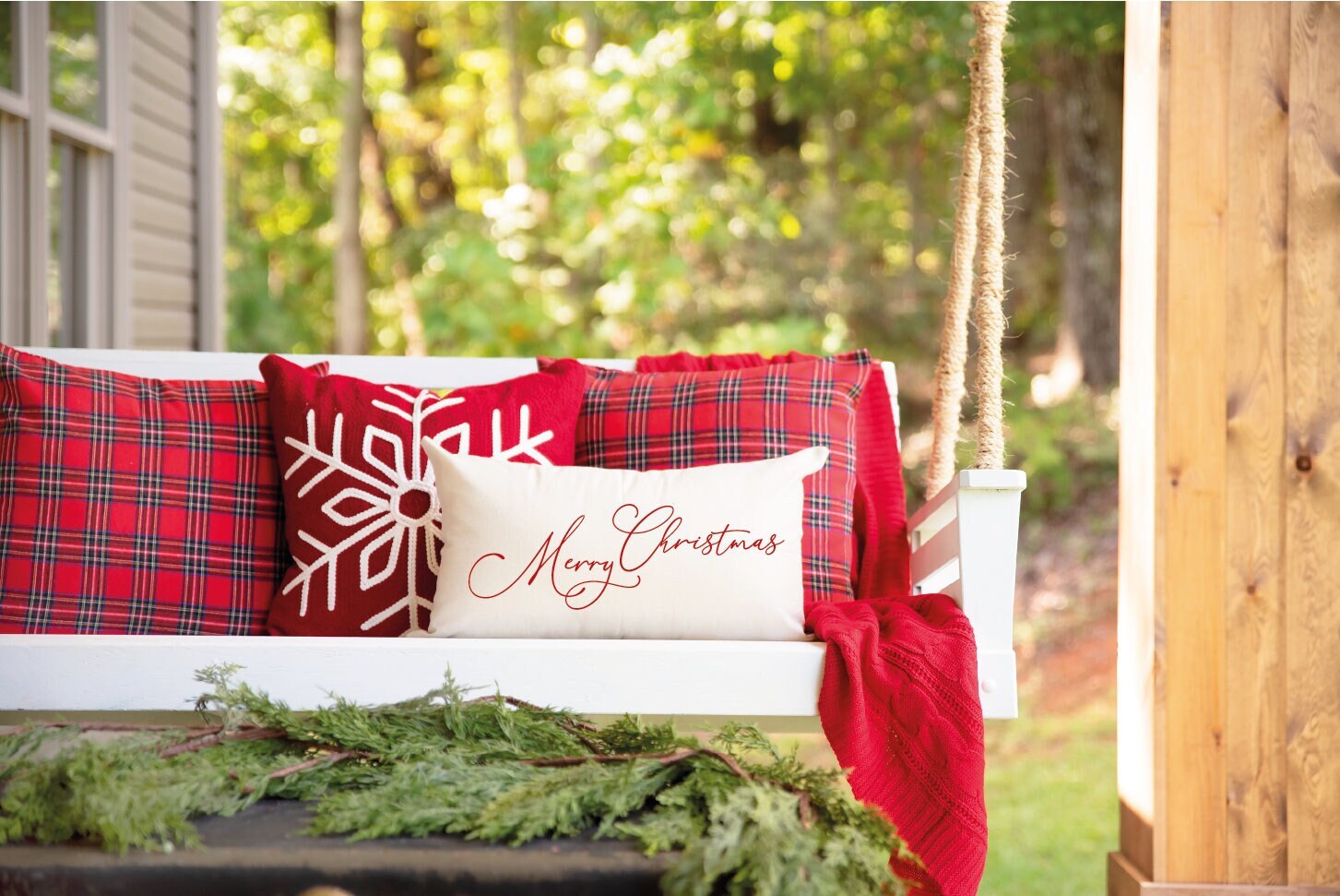 Add a touch of classic holiday charm to your home with a personalized red Christmas pillow!