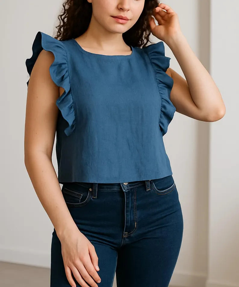 Linen Ruffle Sleeve Top: Cropped Sleeveless Blouse 👚🌸
