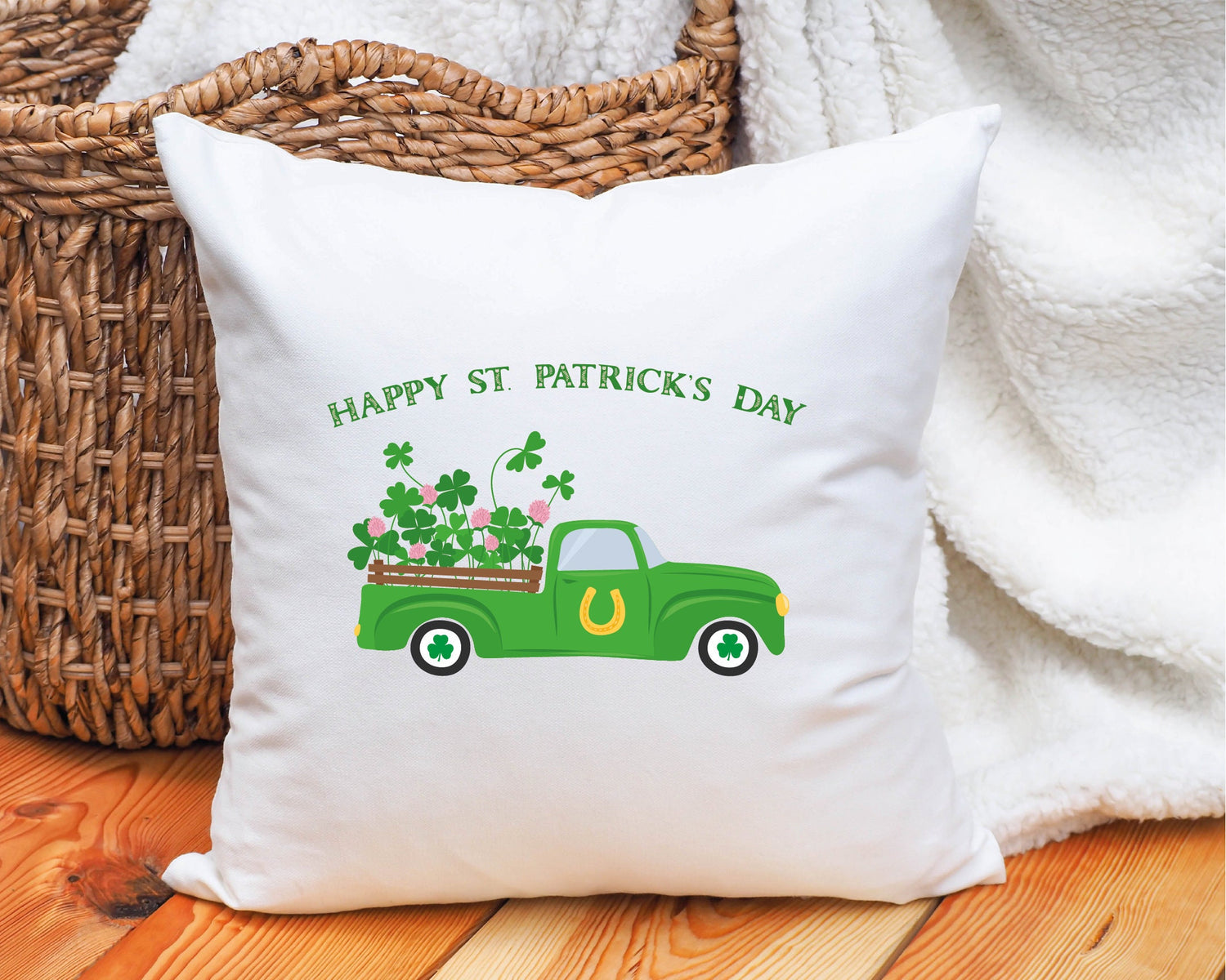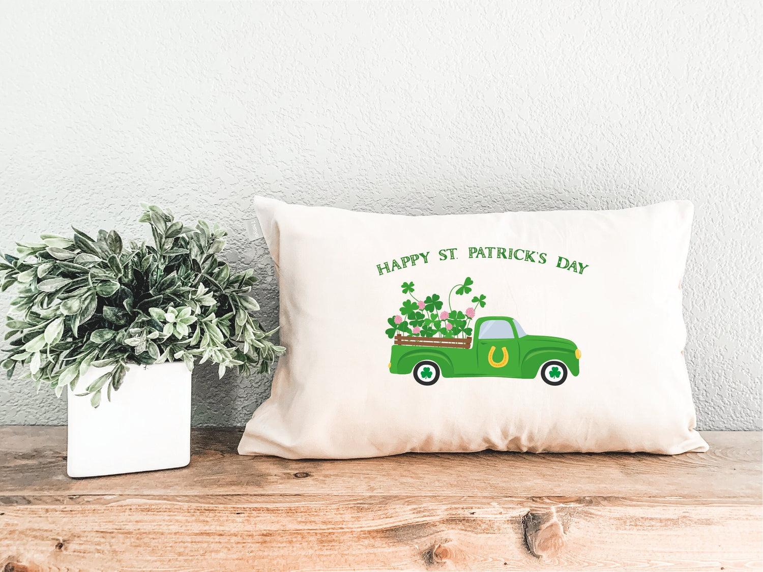 Imagine this pillow nestled on your couch, adding a pop of color to your bed, or even gracing your front porch as a welcoming greeting. It's sure to spark conversations and is a delightful gift for anyone who loves St. Patrick's Day, trucks, or simply wants to add a touch of luck to their home.