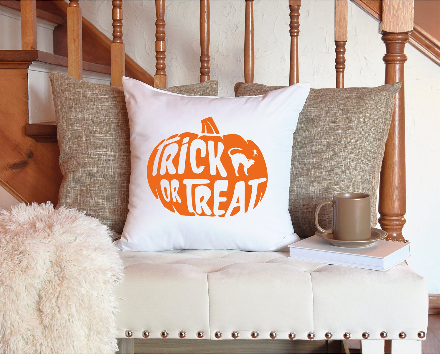 Trick or Treat Pumpkin Face Halloween Pillow, Fall Decorations, Halloween Decor, Halloween Gift, Accent Pillow, Farmhouse Decor, Pillow