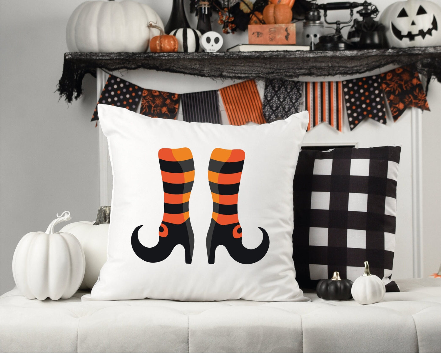 Imagine this pillow nestled on your couch, adding a touch of magic to your bed, or even gracing your front porch as a welcoming (or perhaps slightly eerie) greeting. It's a great conversation starter and a fun gift for anyone who loves Halloween, witches, or just wants to add a touch of whimsy to their home.