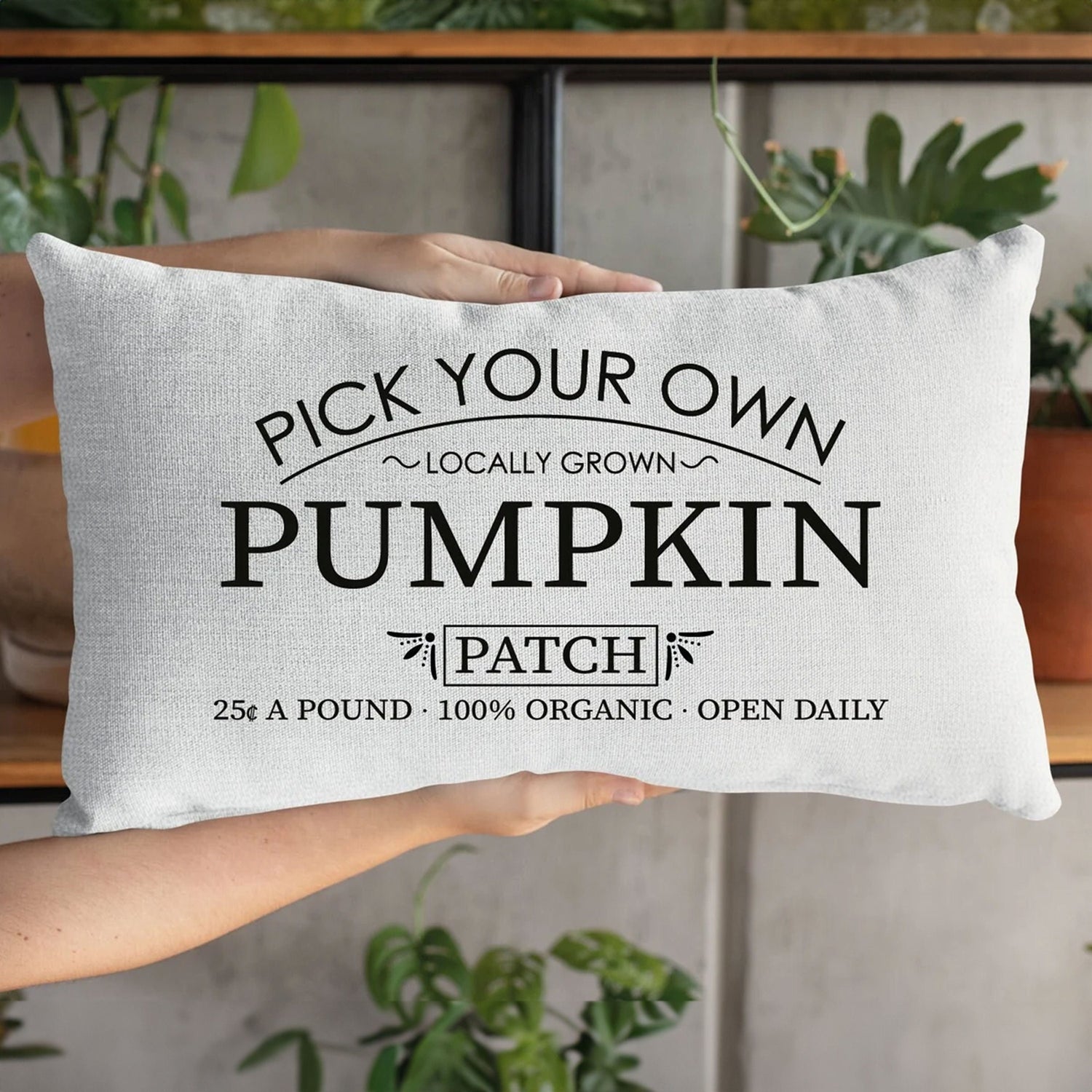 Adding a touch of autumnal charm to your living room, porch, or bedroom: Create a festive and inviting atmosphere with a pillow featuring a charming pumpkin patch design.