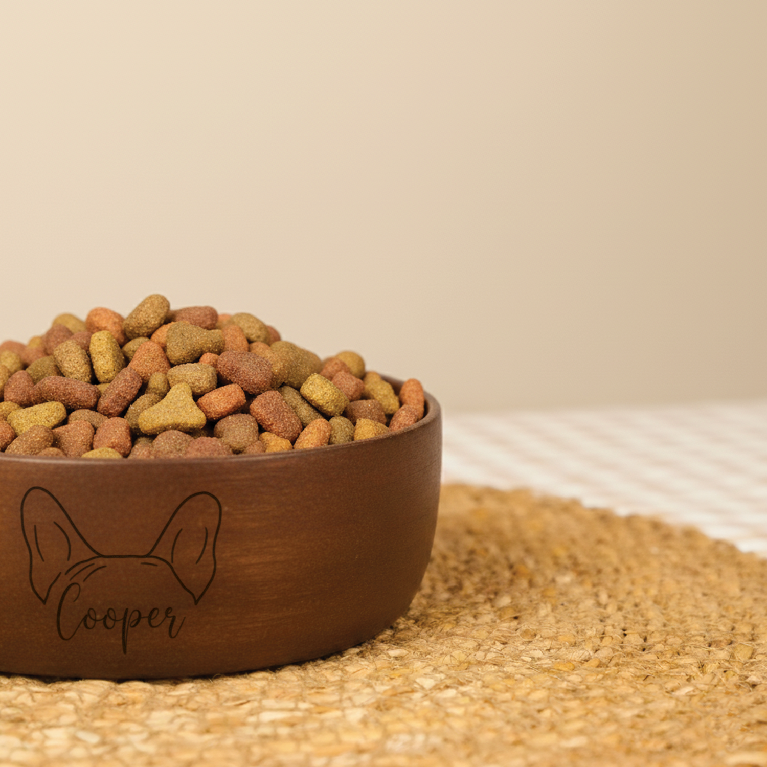 We capture the distinct shape of your dog's ears (floppy, pointy, or anything in between) and expertly laser-engrave them onto the side of this beautiful, durable wooden bowl. This customization ensures a truly one-of-a-kind pet feeding dish that celebrates your dog's unique personality.