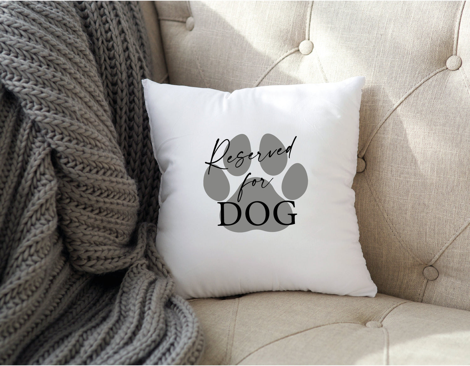 Celebrate your furry friend or give a thoughtful gift to a dog lover with a custom "Reserved for the Dog" pillow!