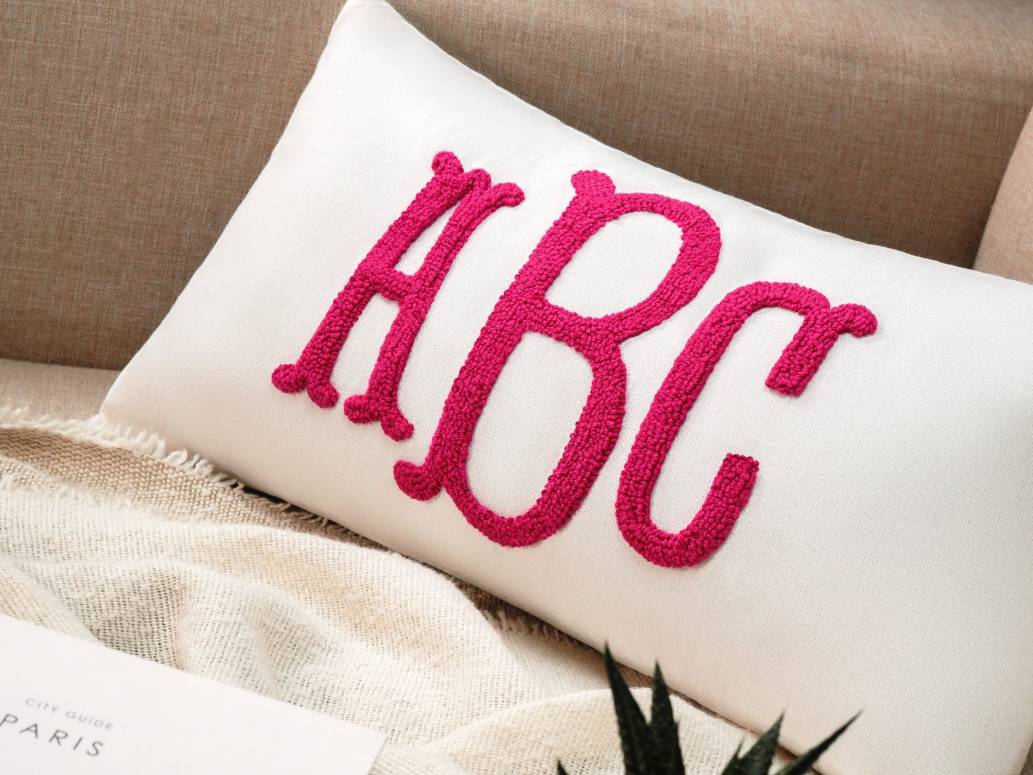 Monogrammed Pillow, Custom Wedding Gift Punch Needle Embroidered Pillow, Personalized Monogram Gift for Couple, Letter Pillow, Housewarming
