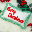 Punch Needle Merry Christmas Pillow with Gingham Ruffle: Decorative Holiday Cushion
