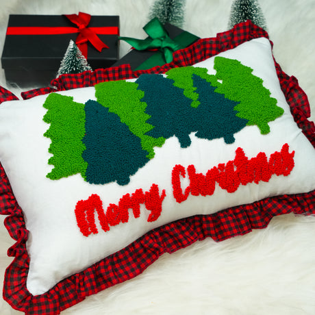 360.00TLUnit price /UnavailablePunch Needle Merry Christmas Pillow with Gingham Ruffle: Decorative Holiday Cushion