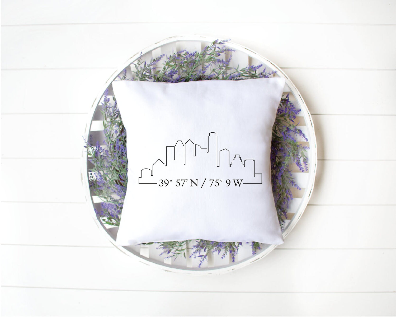 House Warming Gift, Housewarming Pillow, Coordinate Pillow, Home Pillow, Personalized City Skyline, New Home Pillow, Skyline Art
